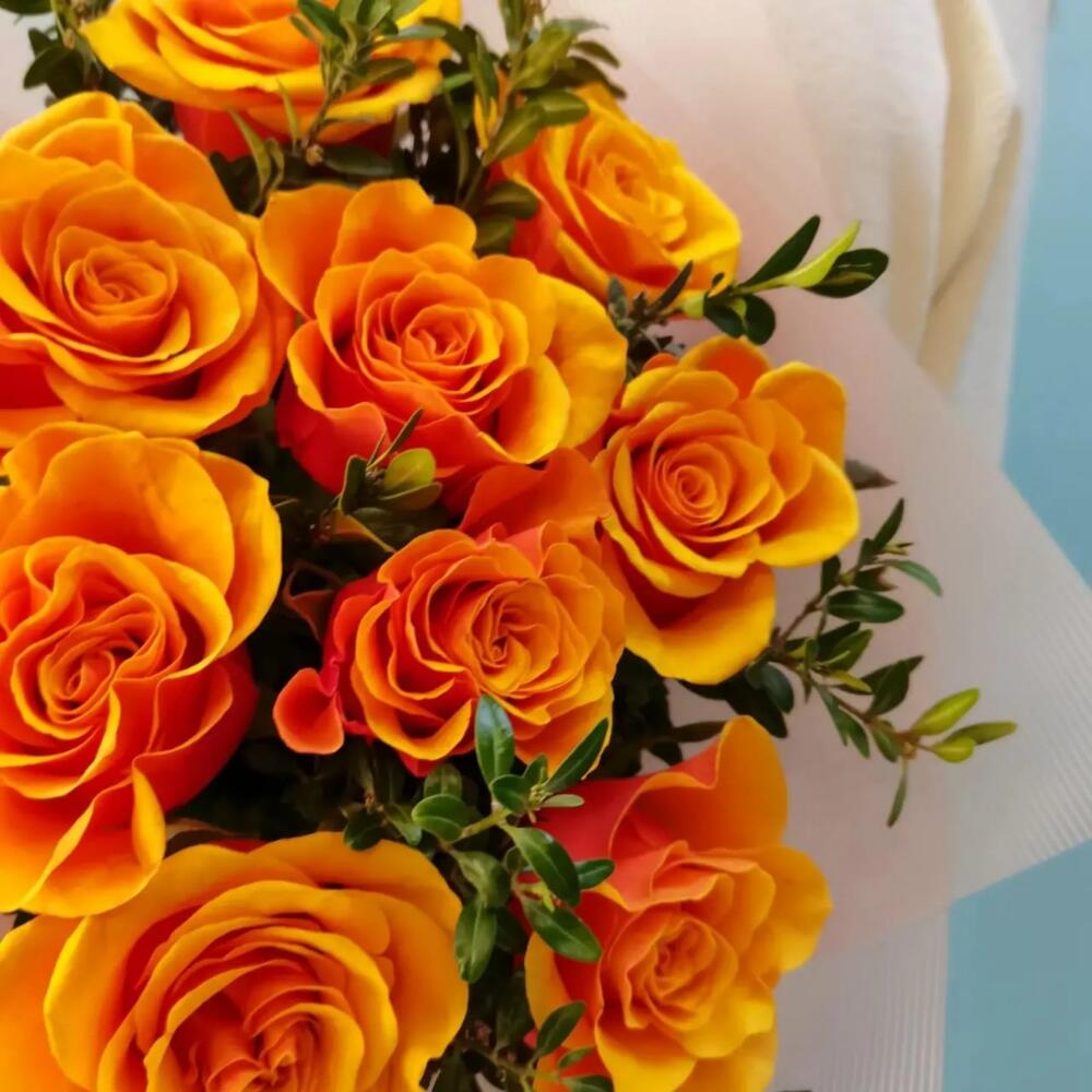 Роза – 9 шт. Лента атласная – 1 шт. Фисташка – 5 гр. Пленка матовая – 2 шт.