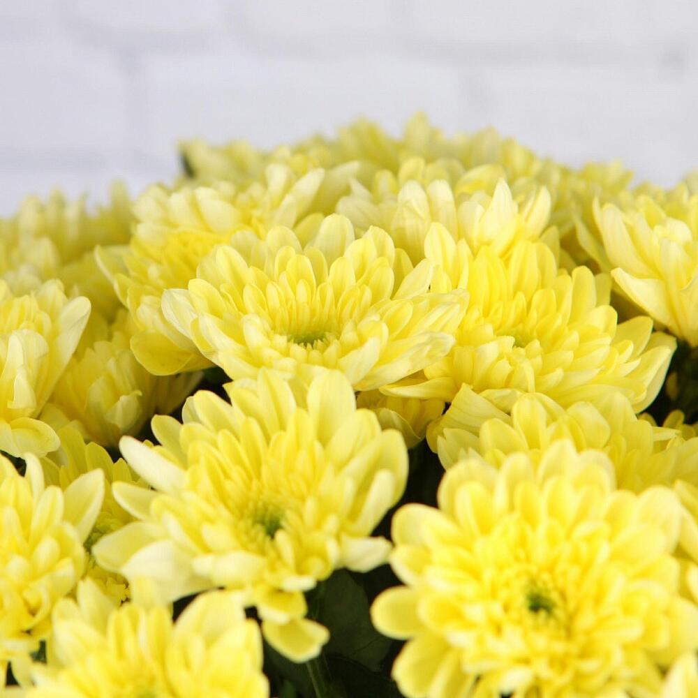Лента атласная - 1 шт. Хризантема кустовая желтая - 9 шт. Упаковка крафт - 4 шт.