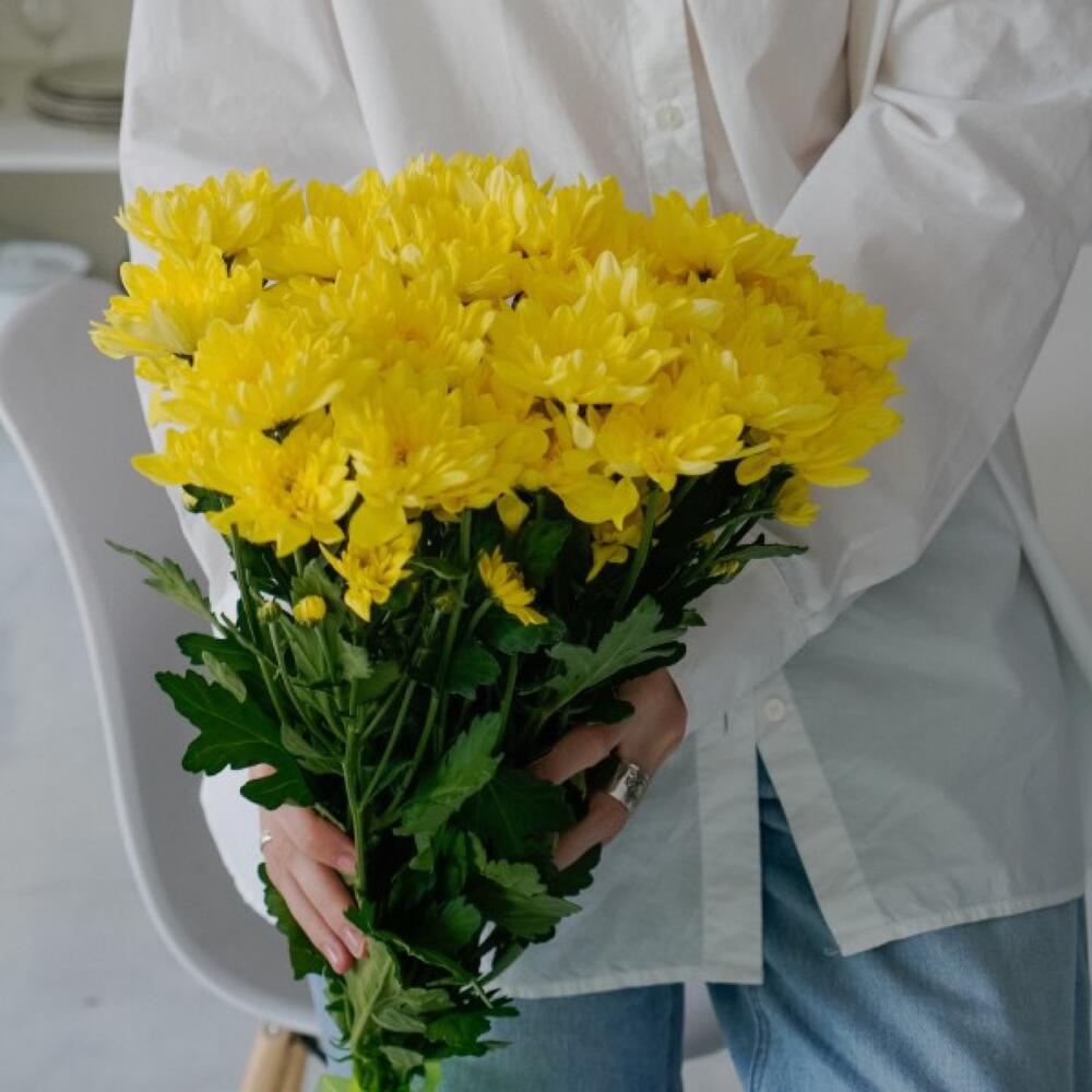 Букет из кустовых хризантем будет долго радовать получателя своей свежестью . Эти цветы одни из самых стойких !