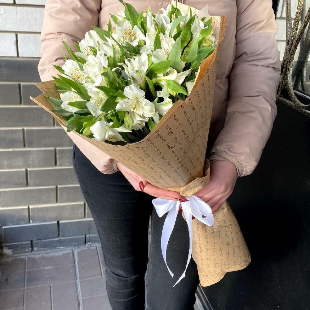 Букет из белых альстромерий в крафте