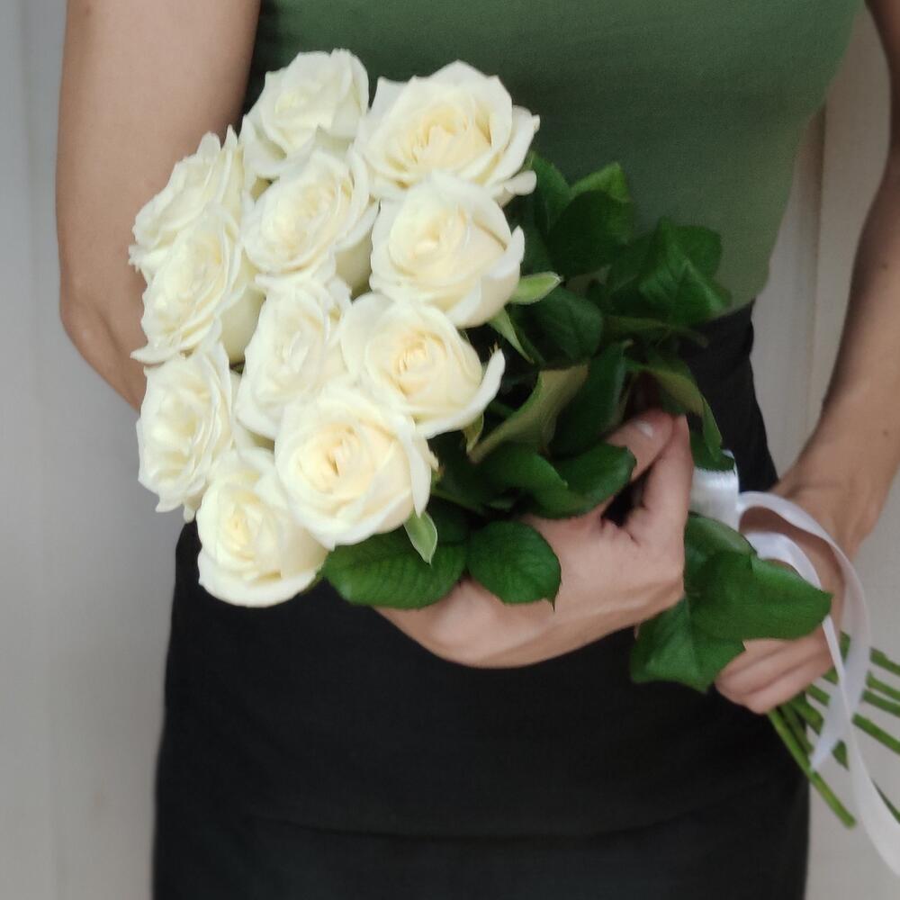Букет с белыми розами 50 см. 11 шт. , доставляется без упаковки, под ленту, без зелени. Классические белые розы с тонким ароматом помогут выразить Ваши чувства. Подойдут для подарка девочке, девушке, коллеге.