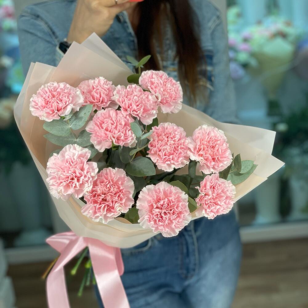 Самый стойкий букет,из нежных диантусов и ароматного эвкалипта 💐