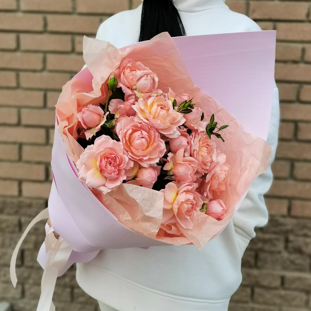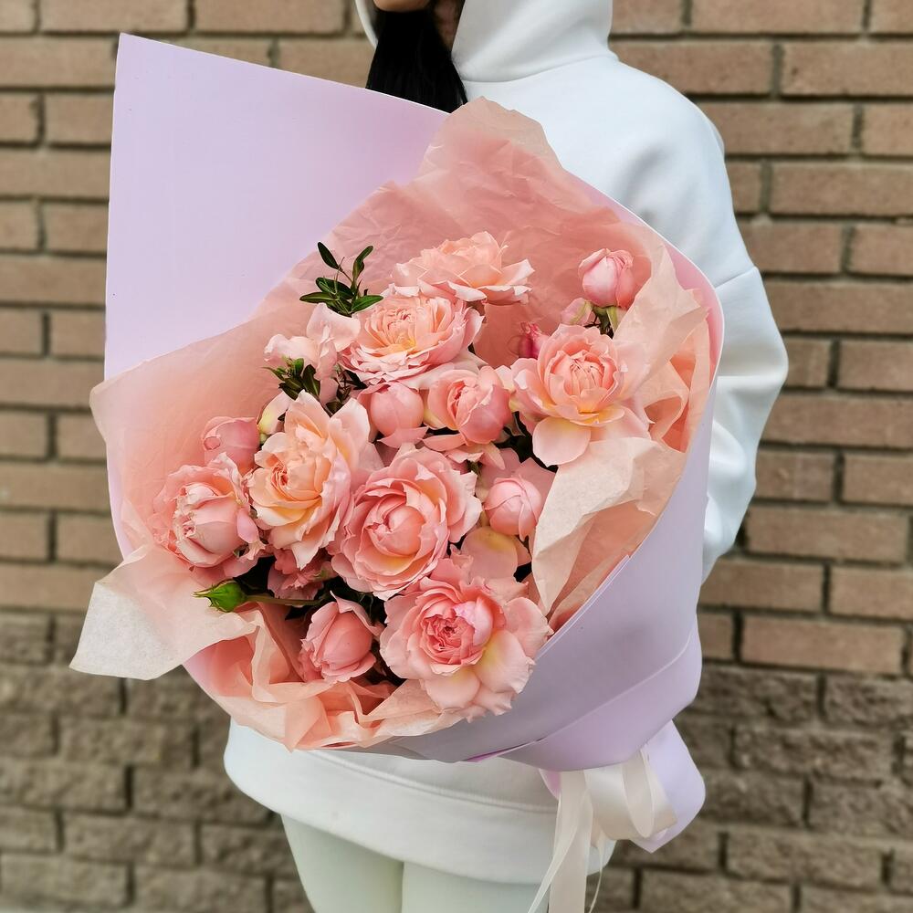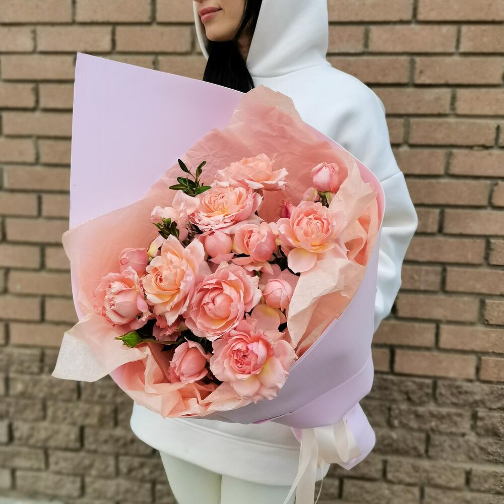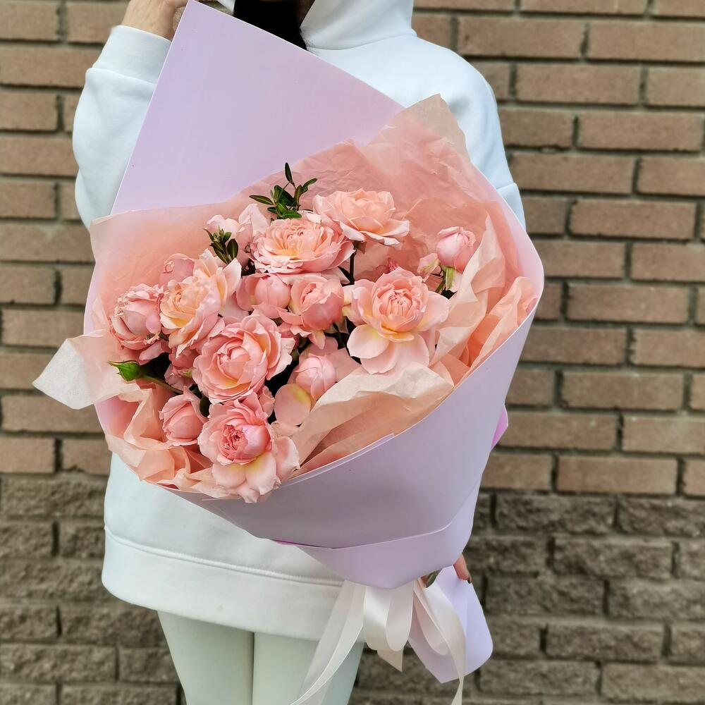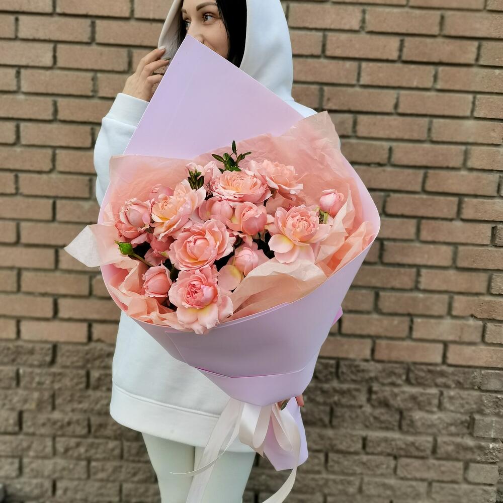 Лента атласная – 1 шт. Фисташка – 1 шт. джульетта роза пионовидная – 5 шт. Фоамиран (упаковка) – 2 шт. Бумага тишью – 2 шт.