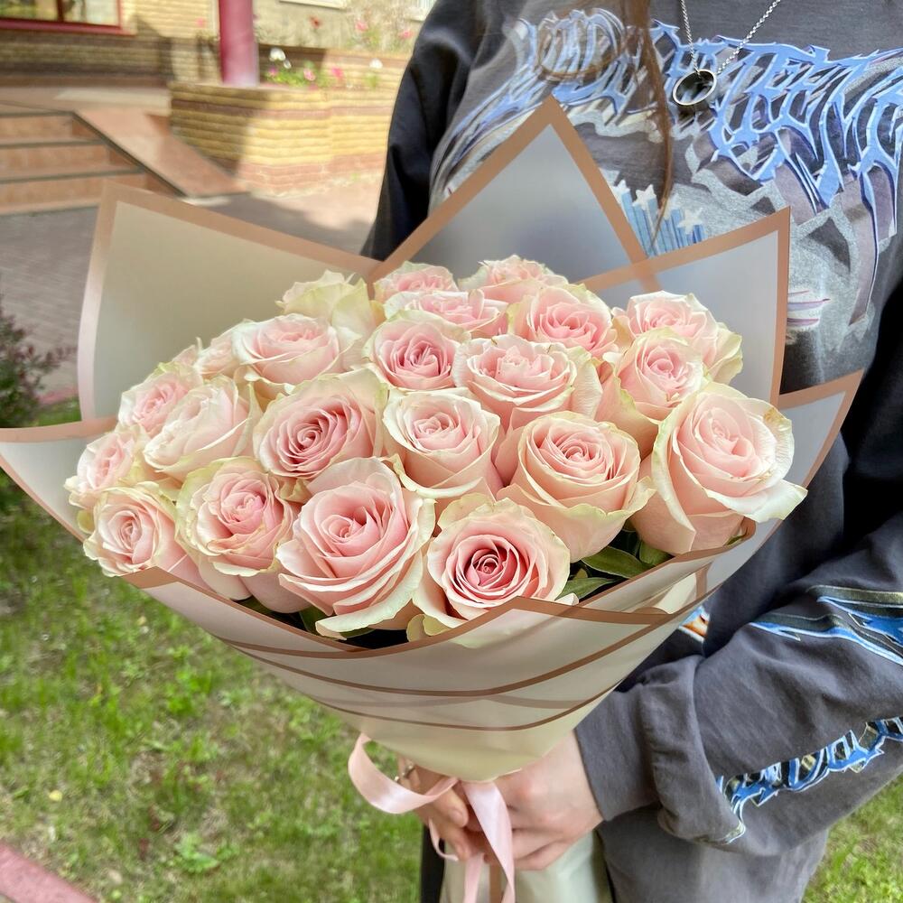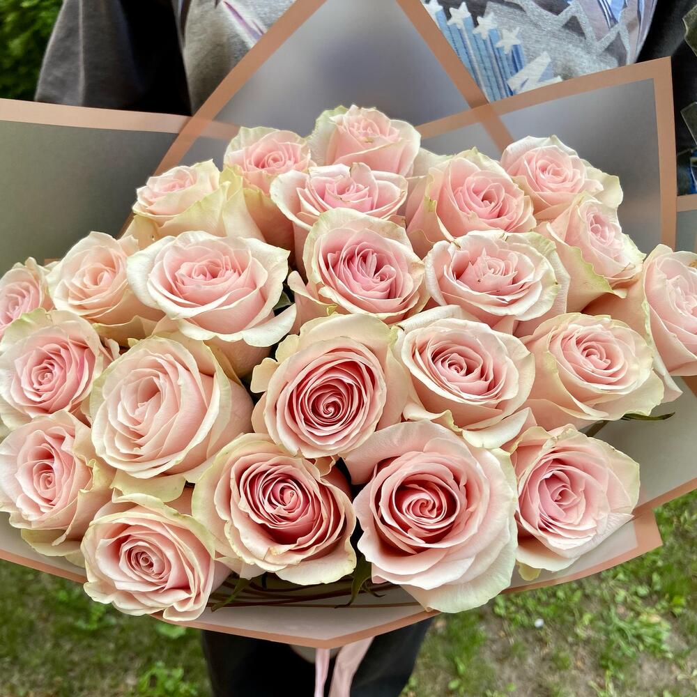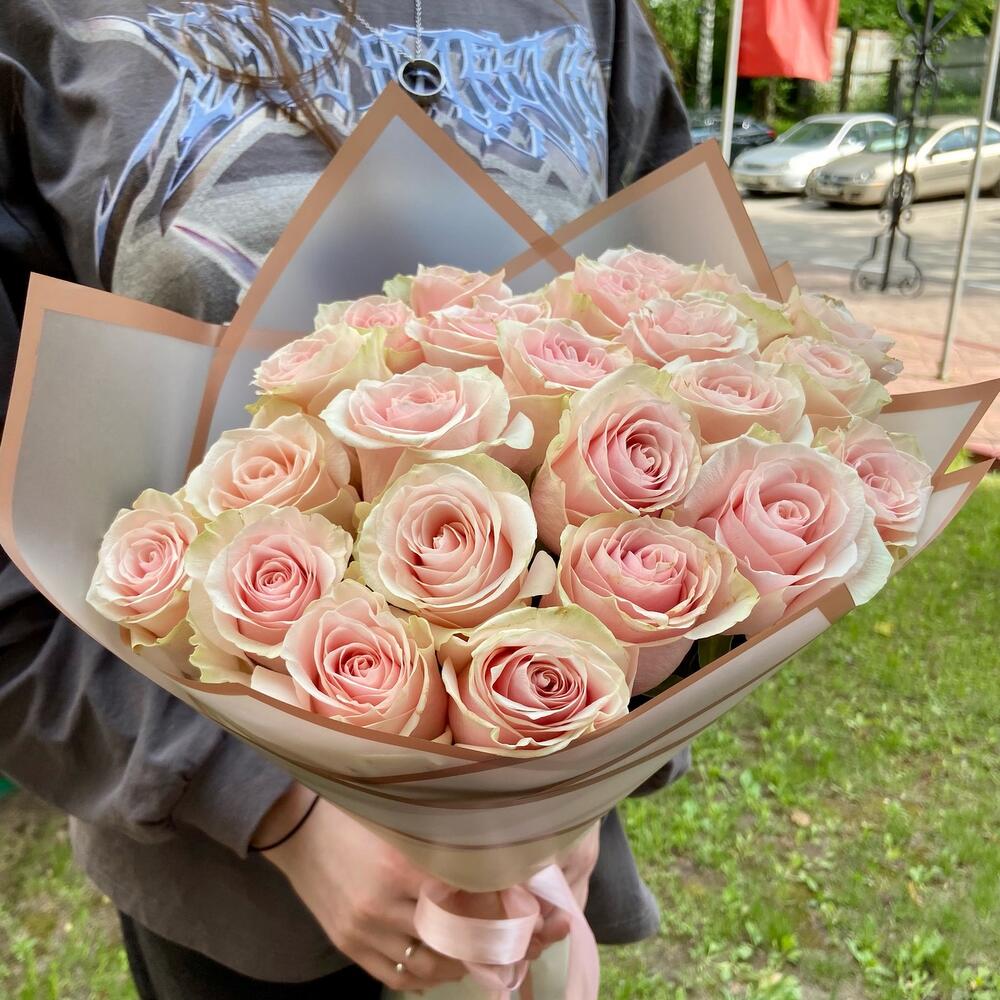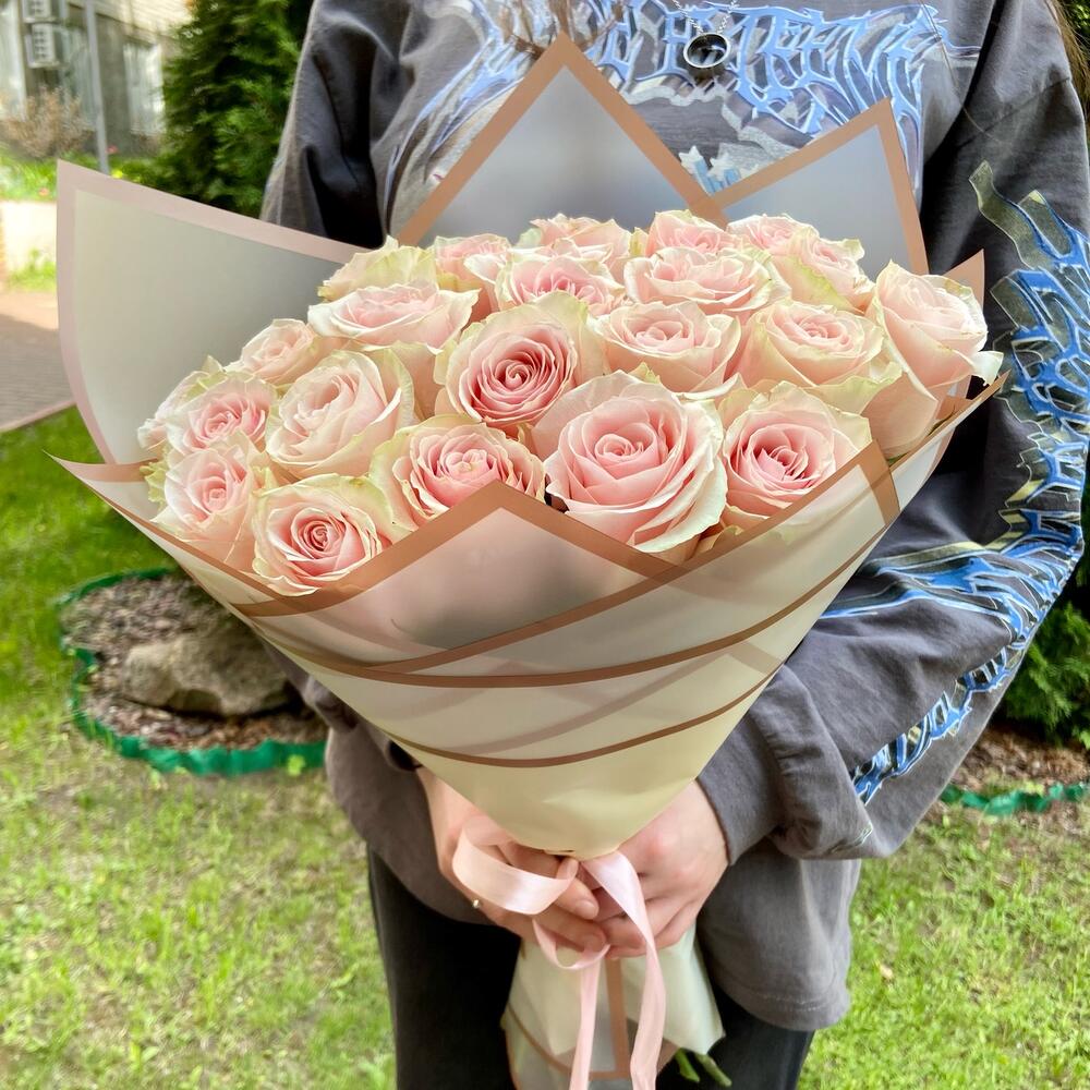 Лента атласная - 1 шт. Матовая упаковка - 3 шт. Эквадор роза - 23 шт.