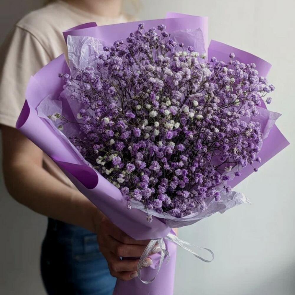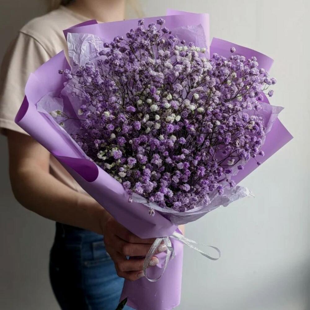 Лента – 1 шт. Упаковка – 1 шт. гипсофила сиреневая – 3 шт.