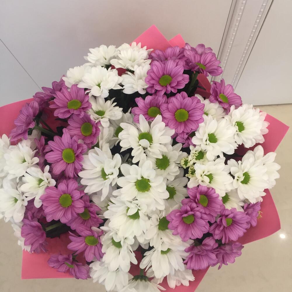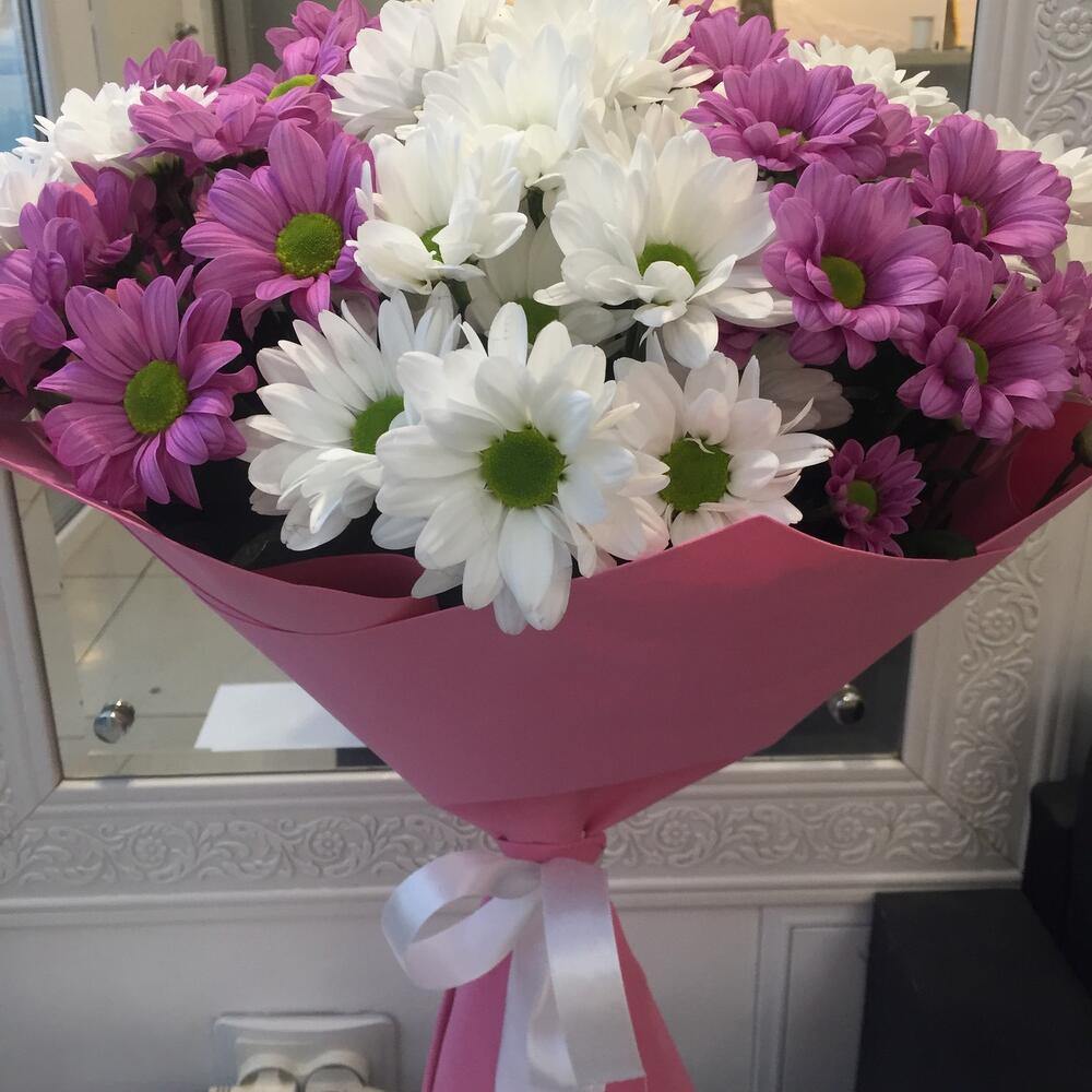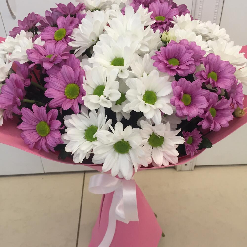 Хризантема кустовая - 9 шт. Лента атласная - 1 шт. упаковка дизайнерская пленка - 2 шт.