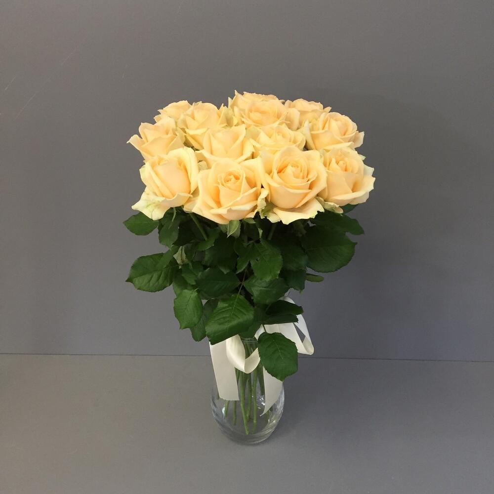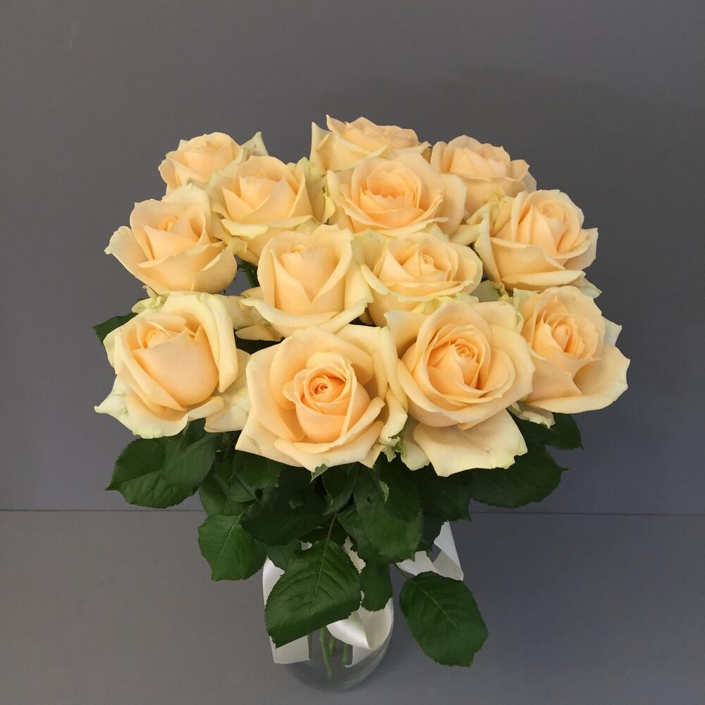Лента атласная – 1 шт. Аквабокс – 1 шт. роза аваланж пич – 13 шт.