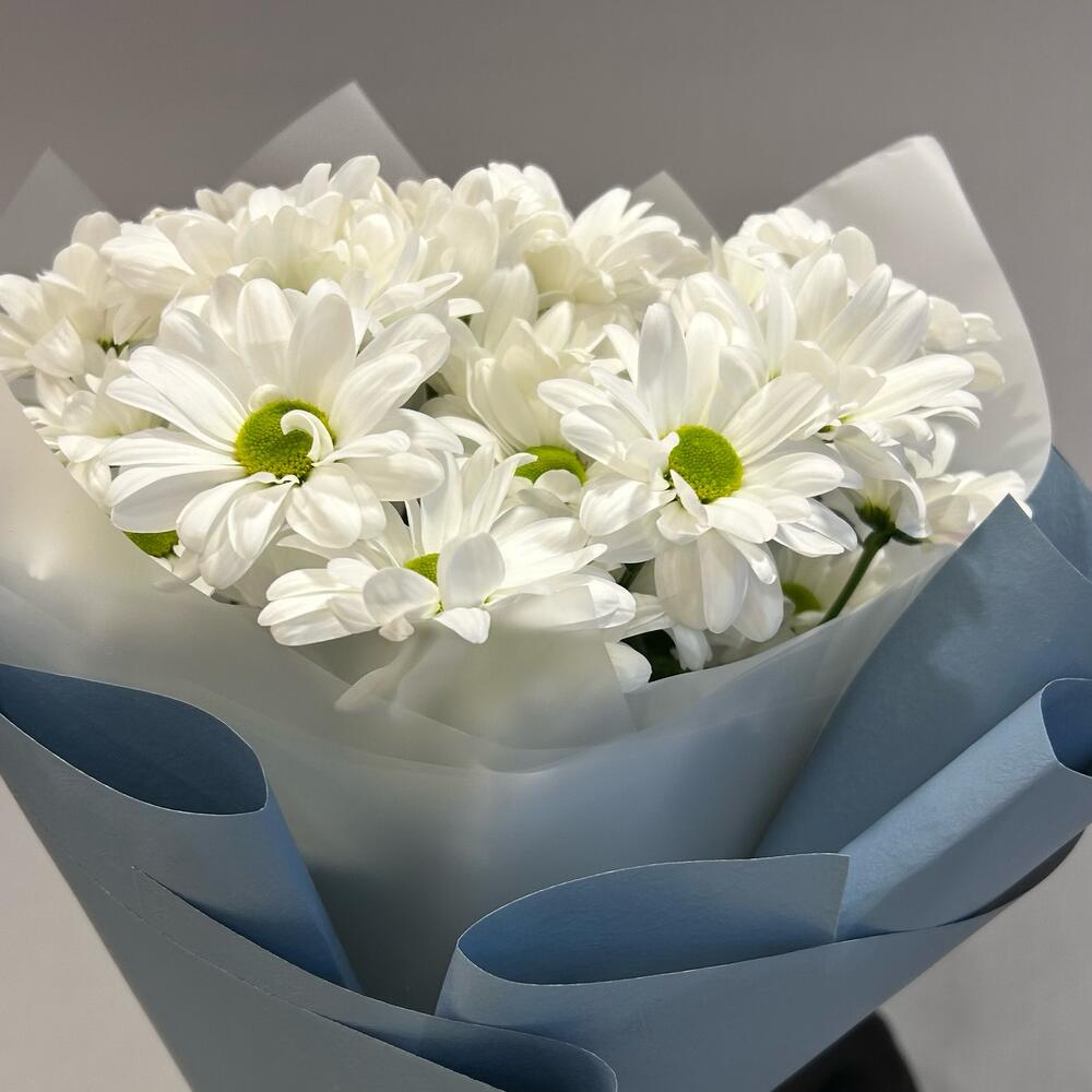 Букет из кустовой белой хризантемы в оформлении