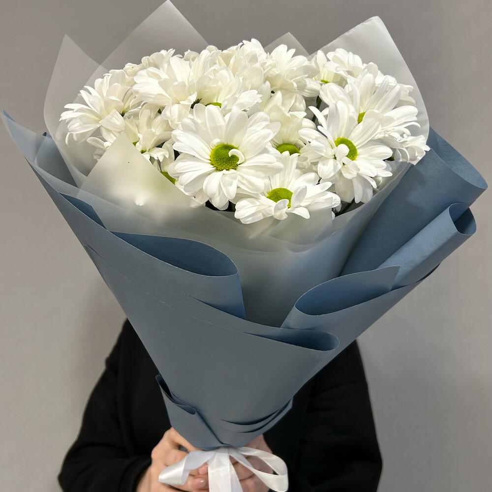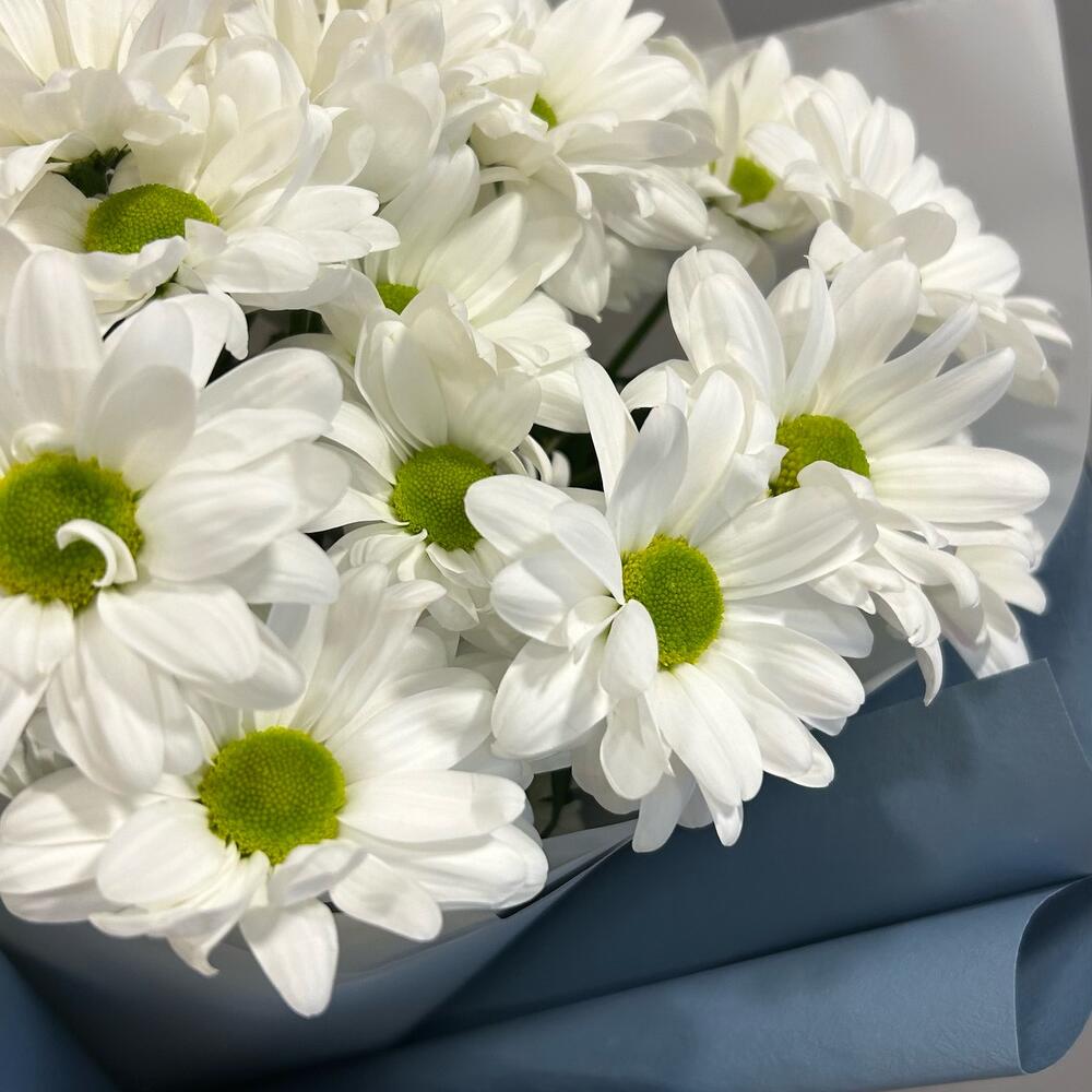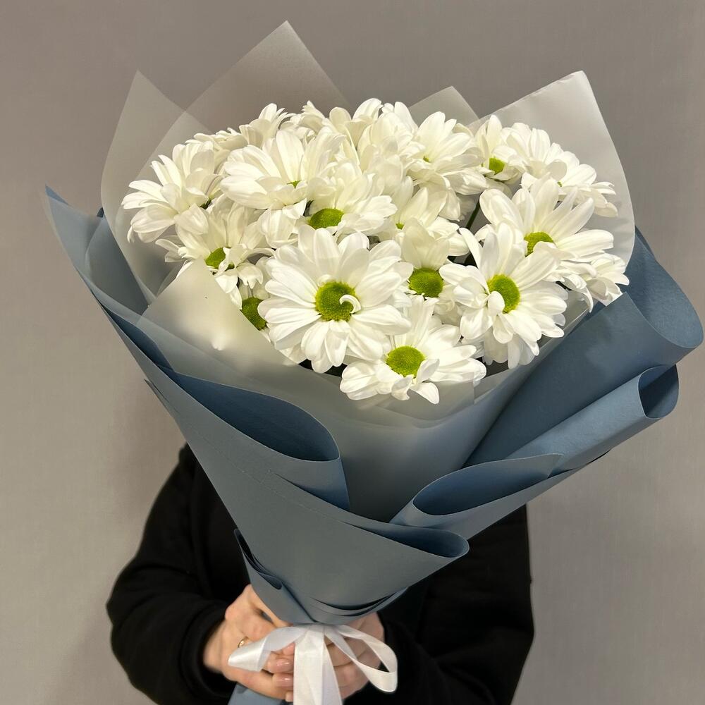 Хризантема кустовая – 3 шт. Лента атласная – 1 шт. Упаковка дизайнерская – 2 шт.