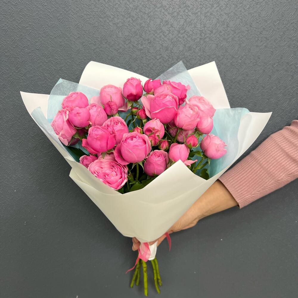 Тишью – 2 шт. Роза пионовидная кустовая – 5 шт. Пленка матовая – 2 шт.