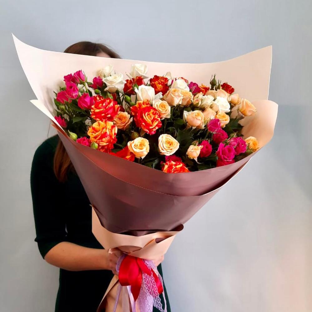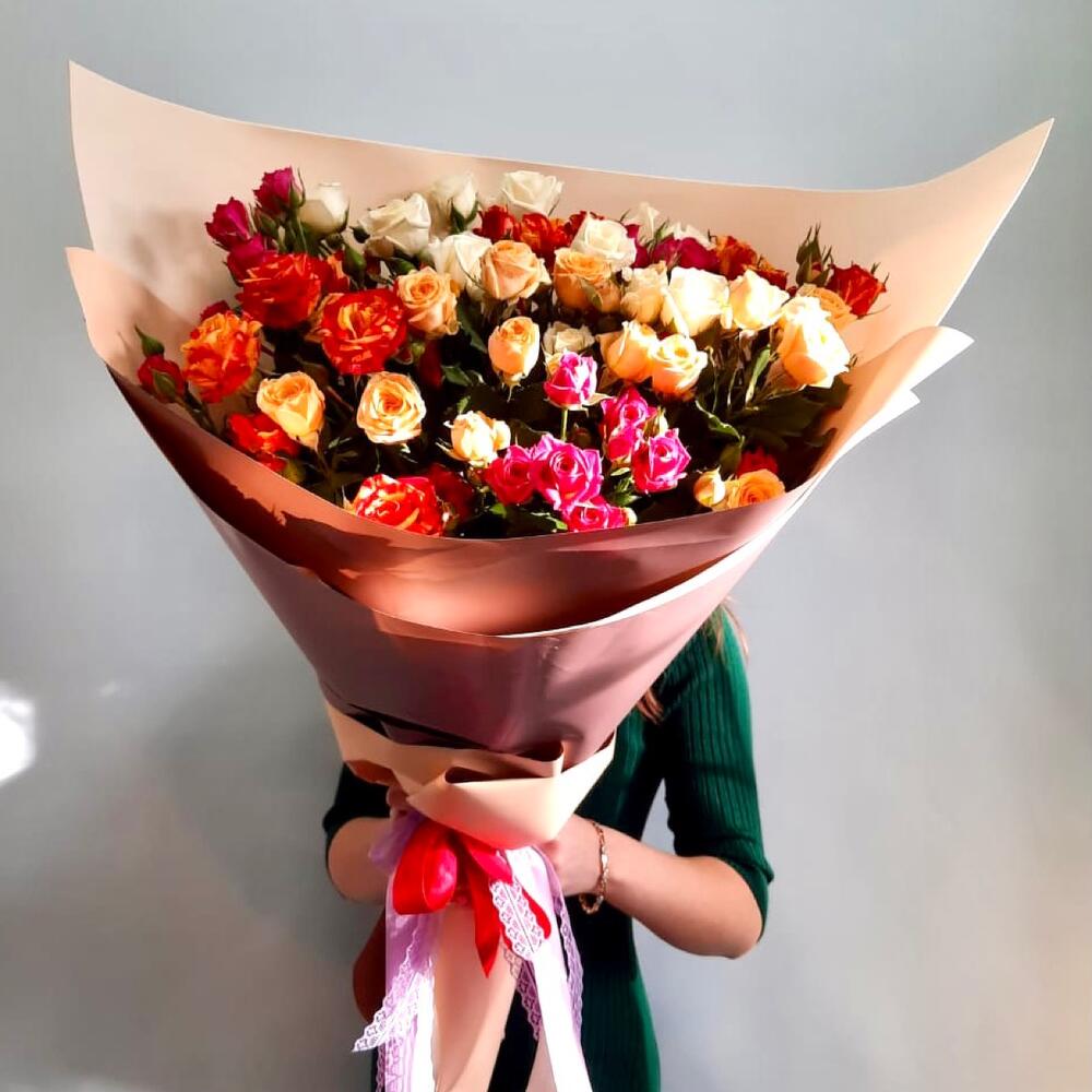 Шикарная, объемная кустовая роза, наш 100% хит букет, подойдет на любое мероприятие и любой праздник, а получателю будет очень приятно принять такой очаровательный букет.Оформление по согласованию может быть любым.Цветовую гамму букета можно обговорить с менеджером по телефону.На фото пример оформления. Мы гарантируем сделать букет из всех наименований, но может быть иногда изменена цветовая гамма, в силу того, что цветы в разных поставках могут быть немного другого оттенка, спасибо за понимание.