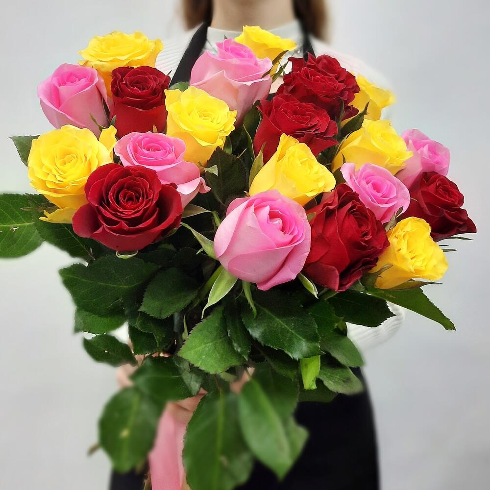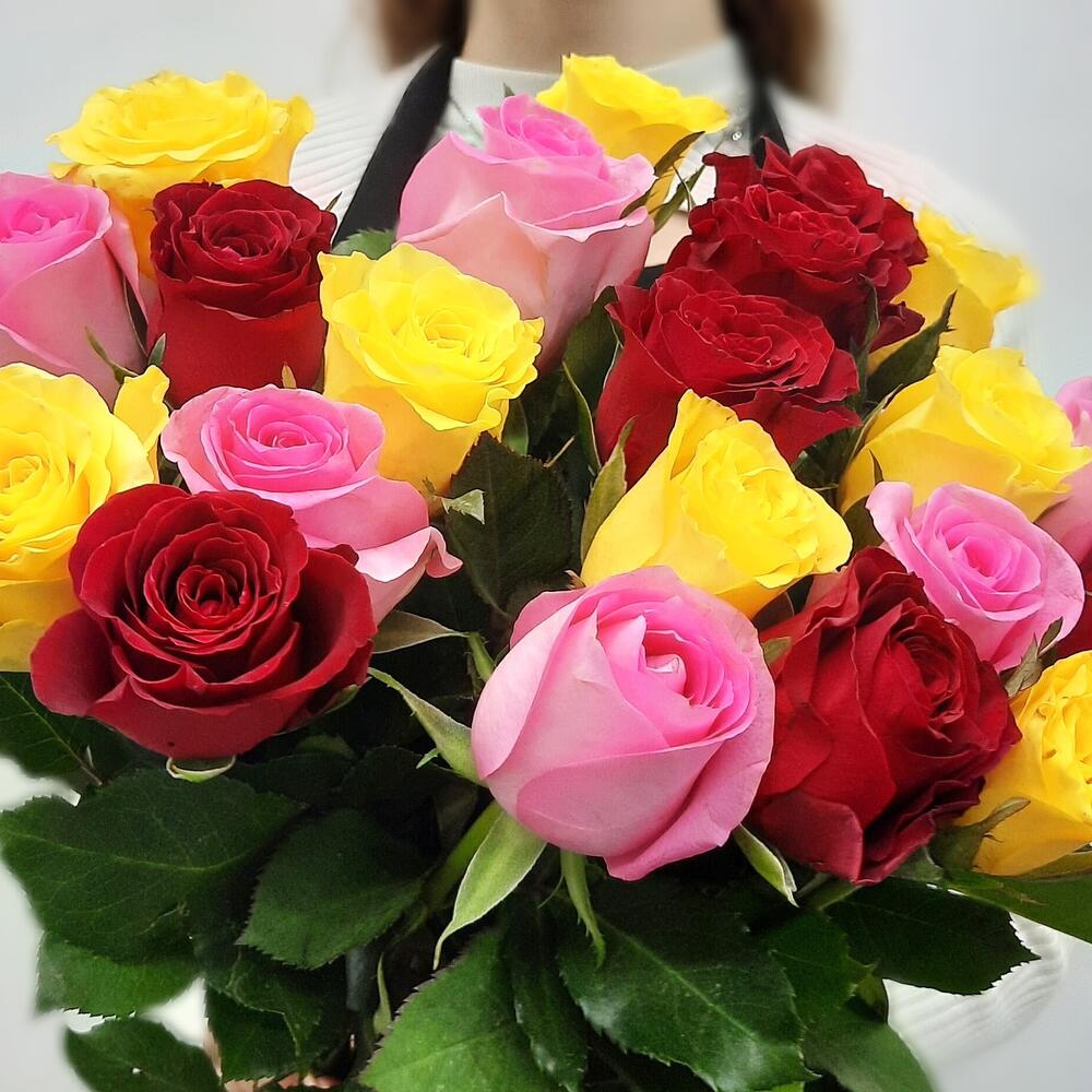 Букет из роз 50 см с средним размером бутона, эта роза отличается высокой стойкостью и огромным выбором по цветам. В зависимости от поставок расцветки могут быть любыми. Можно согласовать их менеджером.