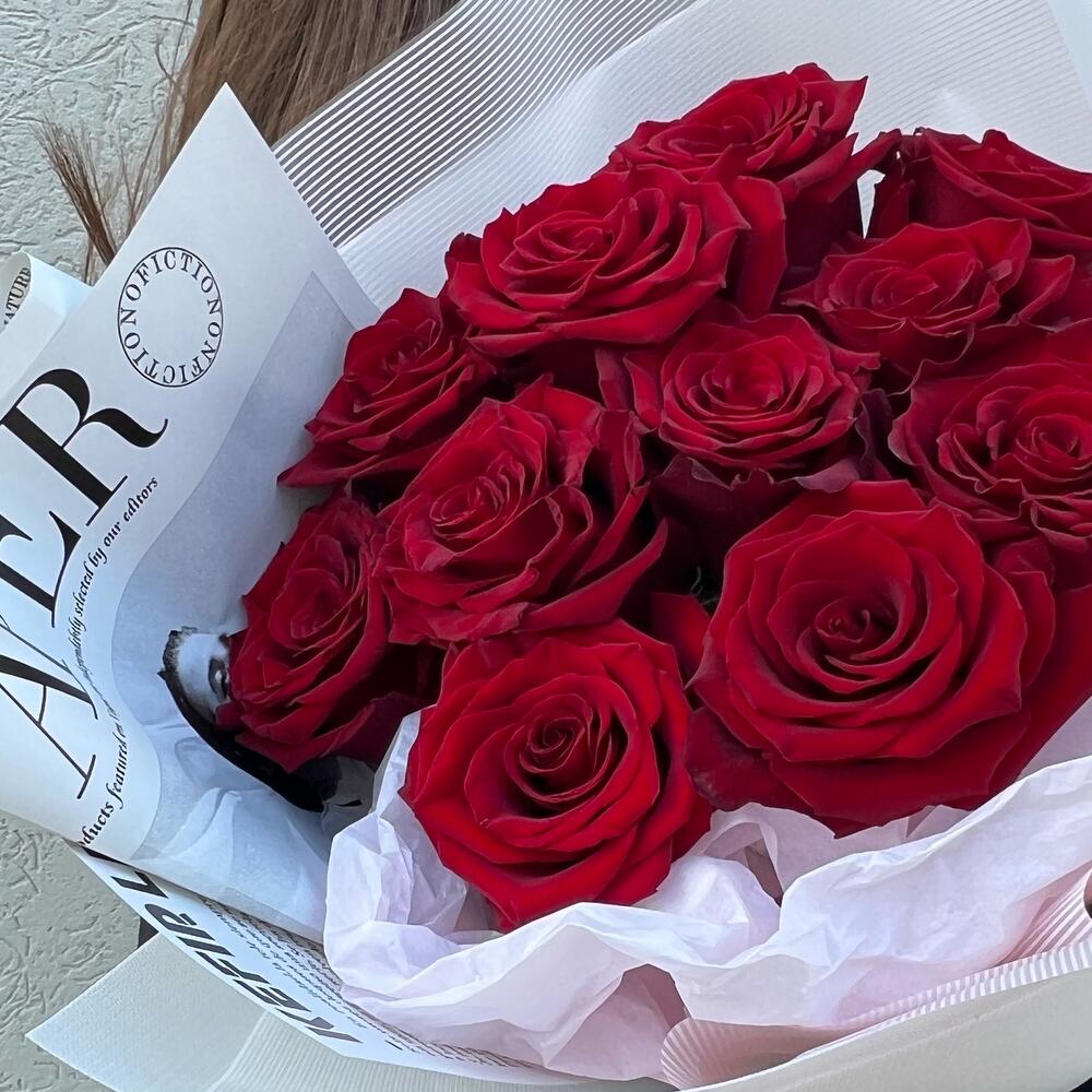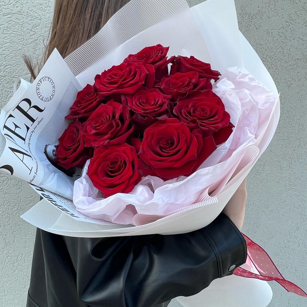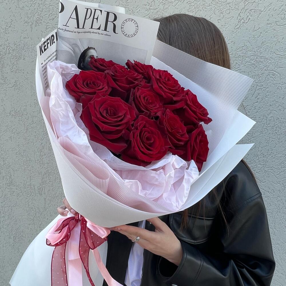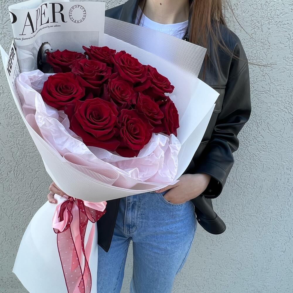 Роза Эквадор - 11 шт. Лента атласная - 2 шт. Упаковка дизайнерская - 1 шт.