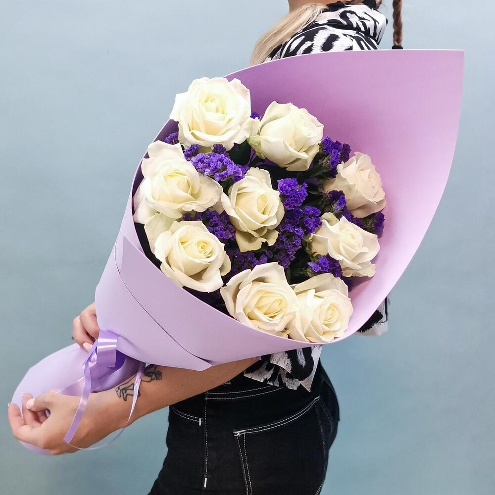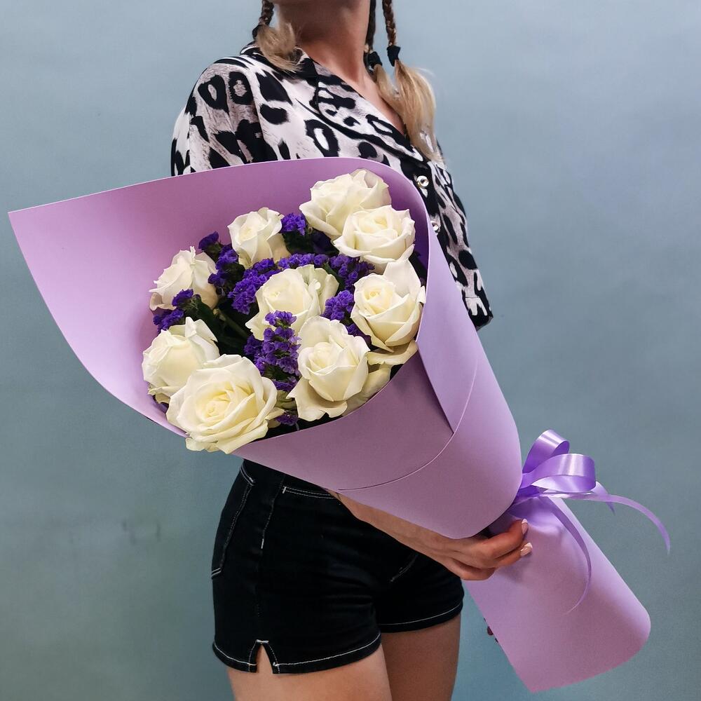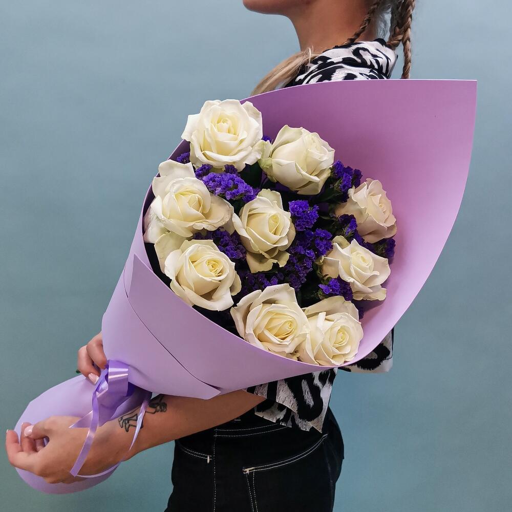 Статица – 3 шт. Роза – 9 шт. Лента атласная – 1 шт. Фоамиран (упаковка) – 2 шт.