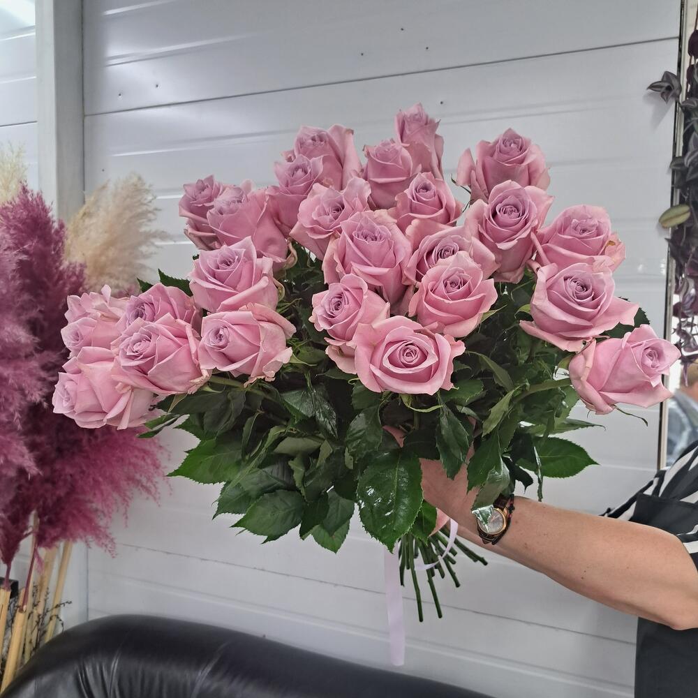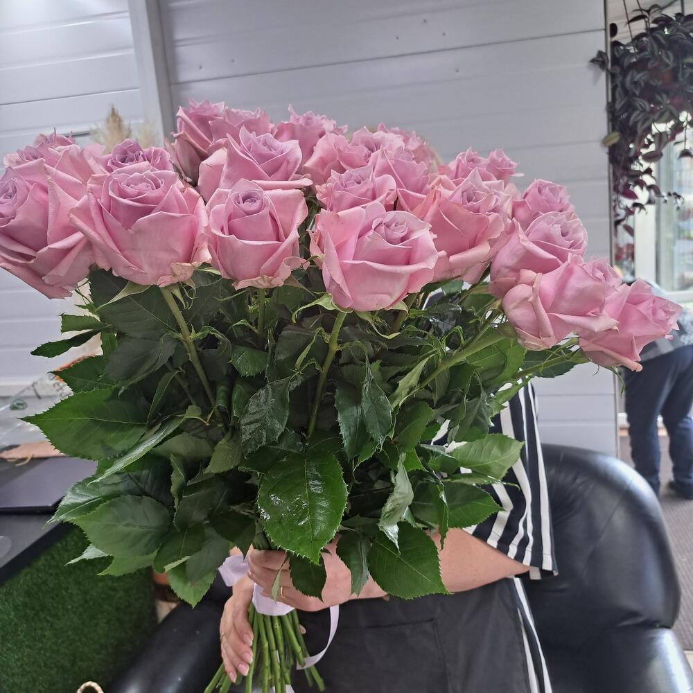 Естественно голубая роза, с нежным розовым отливом, диаметр бутона в роспуске 12см, высота бутона 8-10см
