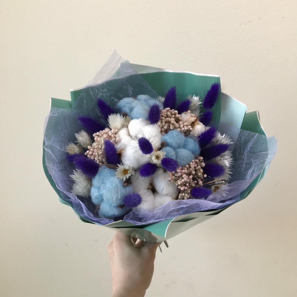 Озотамнус – 3 шт. Хлопок – 6 шт. Упаковка дизайнерская – 1 шт. Лагурус – 18 шт. фенокома – 2 шт.
