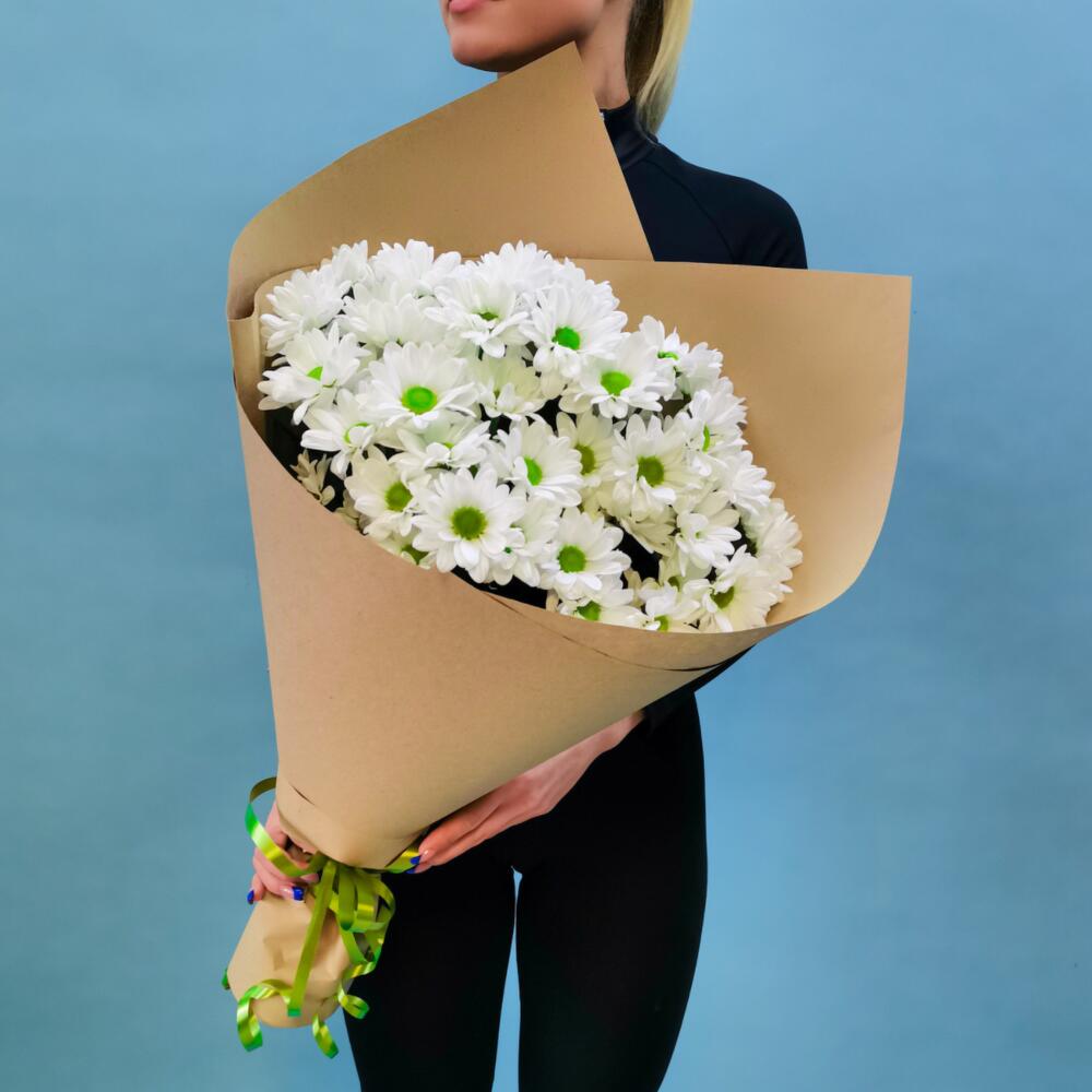Лента атласная – 1 шт. Дизайнерская упаковка – 1 шт. хризантема спрей – 7 шт.