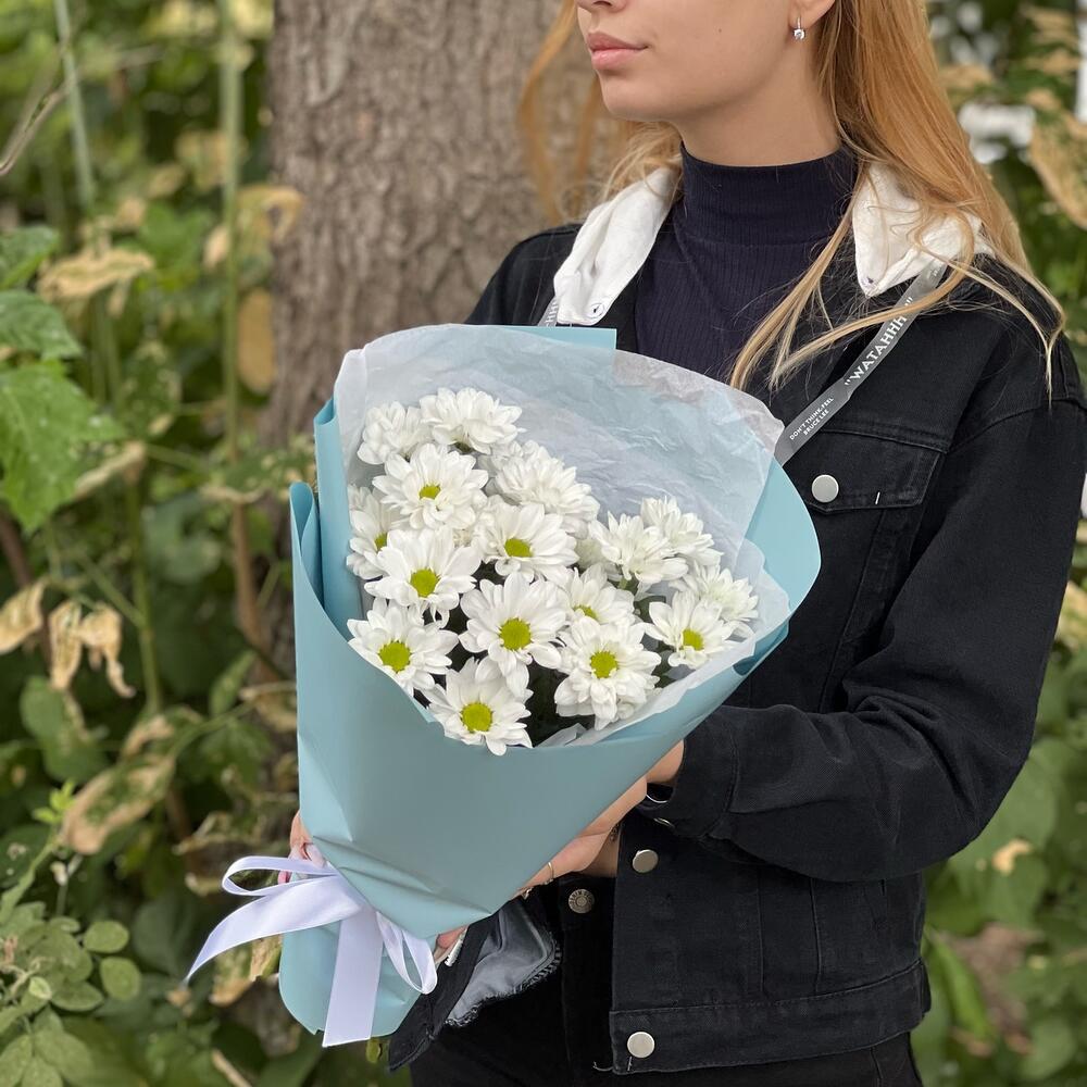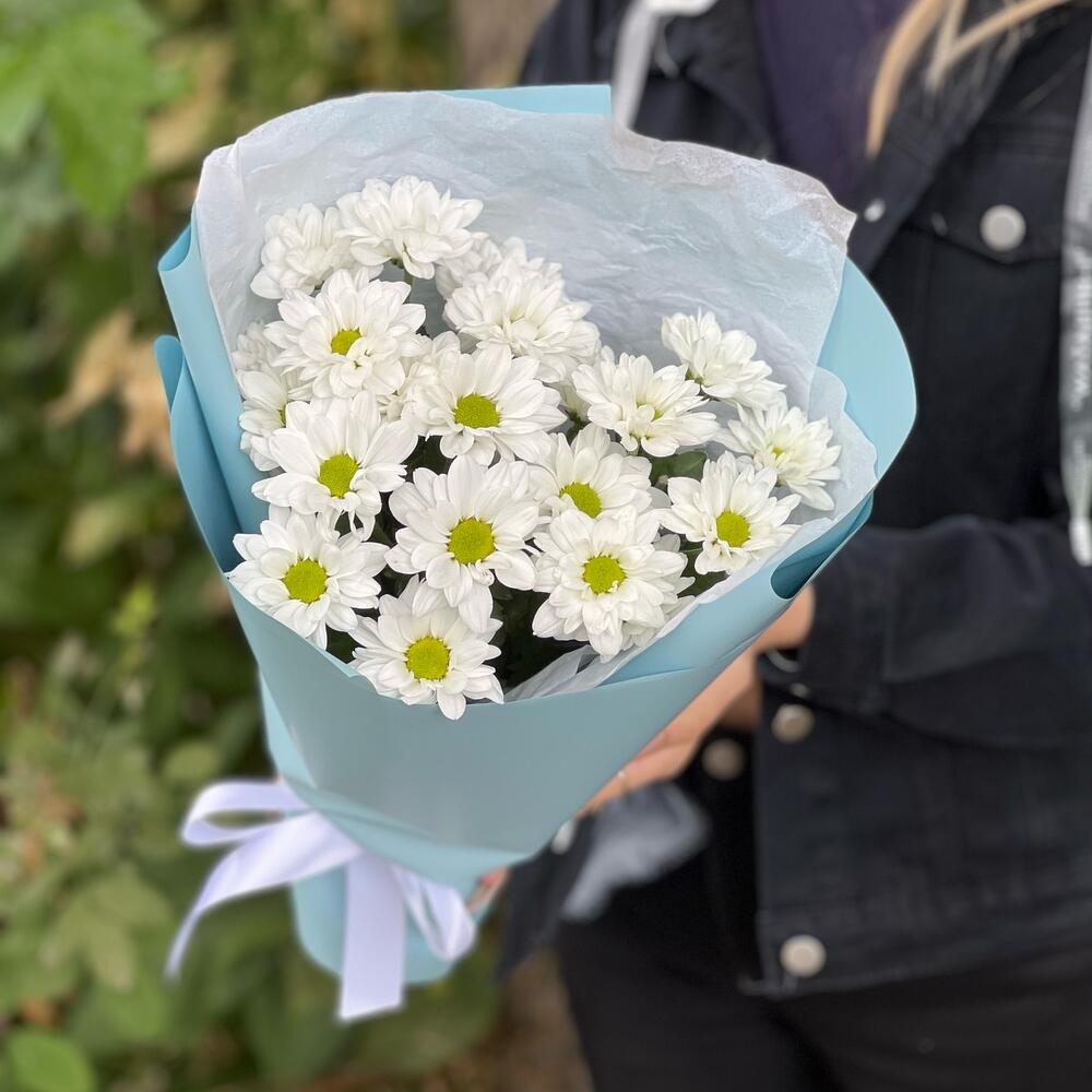 Хризантема кустовая – 3 шт. Матовая пленка – 1 шт. Бумага тишью – 1 шт.