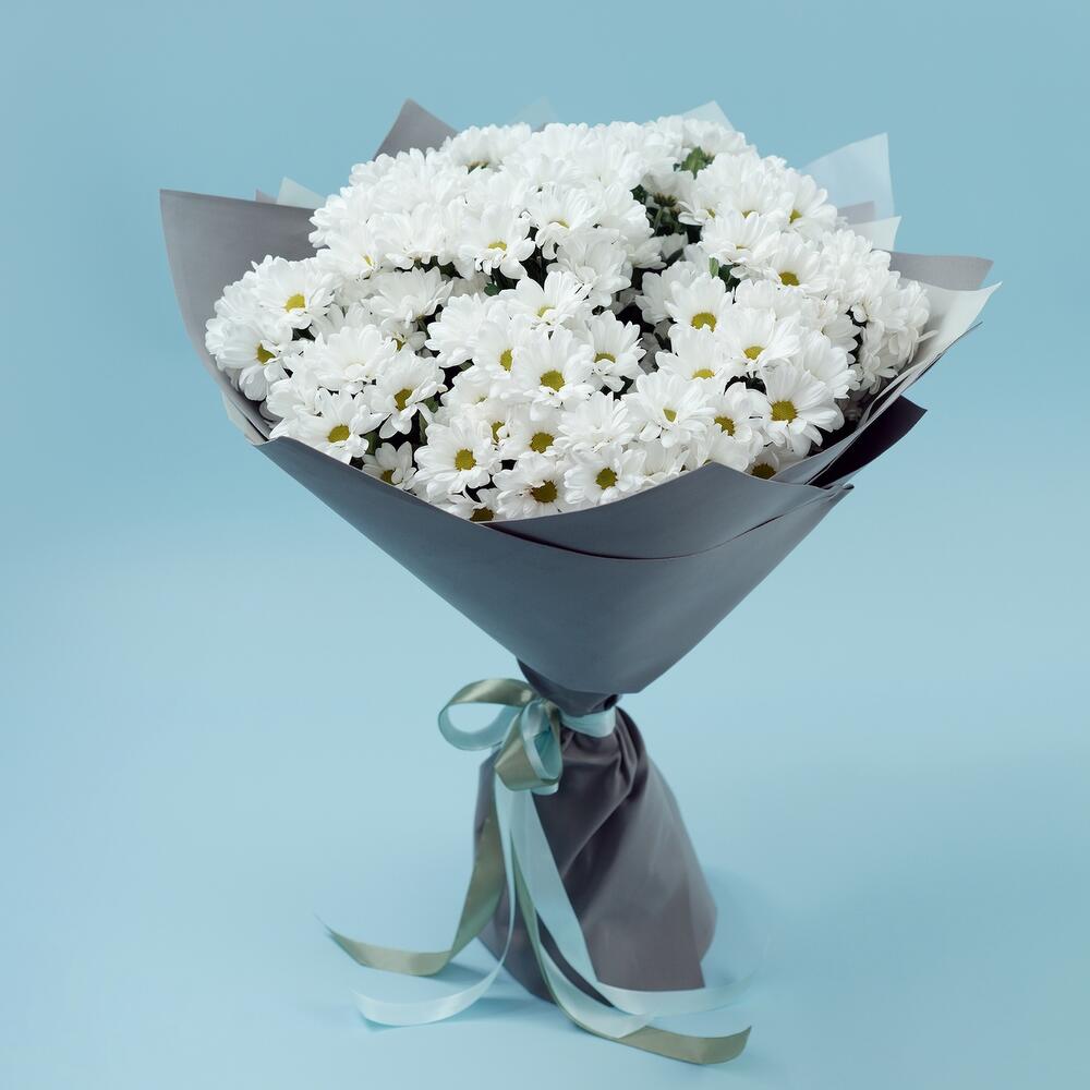 Лента – 2 шт. Хризантема кустовая – 15 шт. декоративная упаковка – 4 шт.