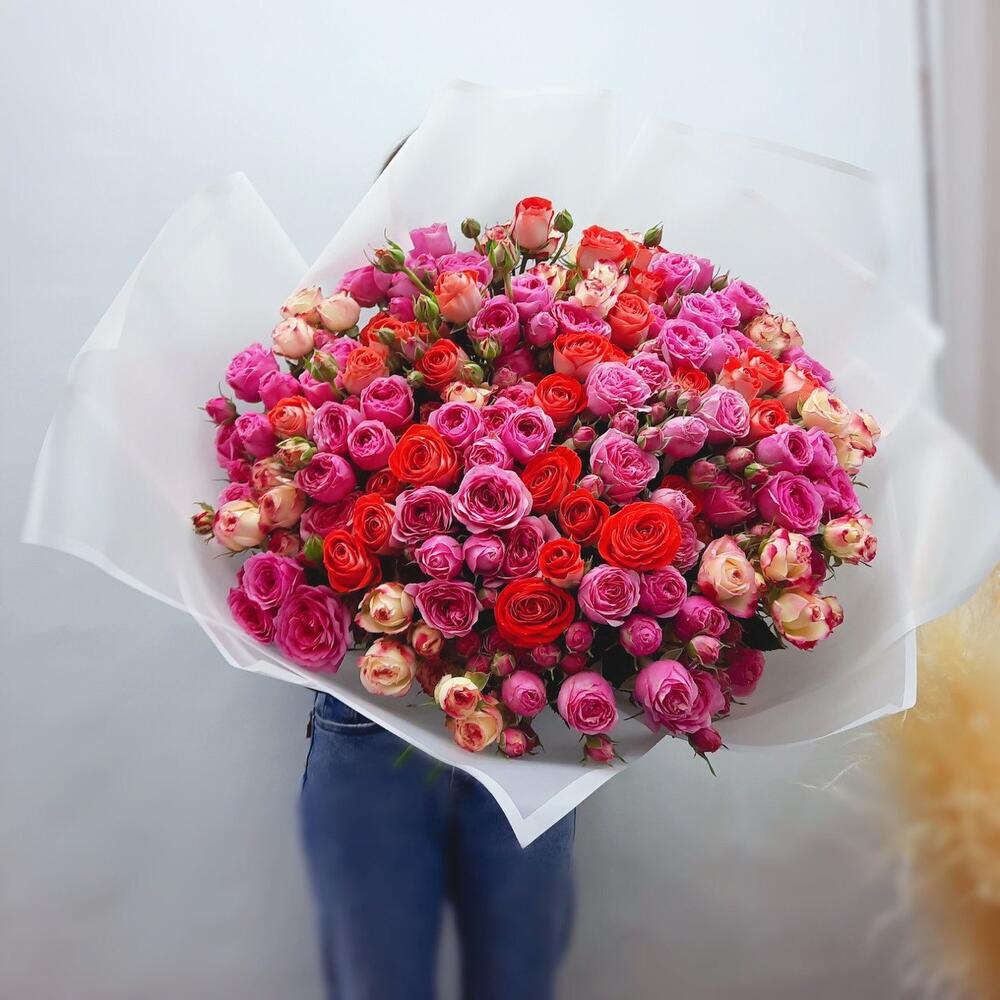 Кустовая роза – 27 шт. Матовая пленка – 1 шт.