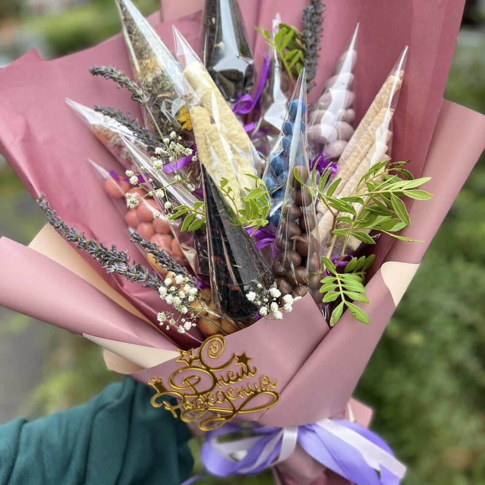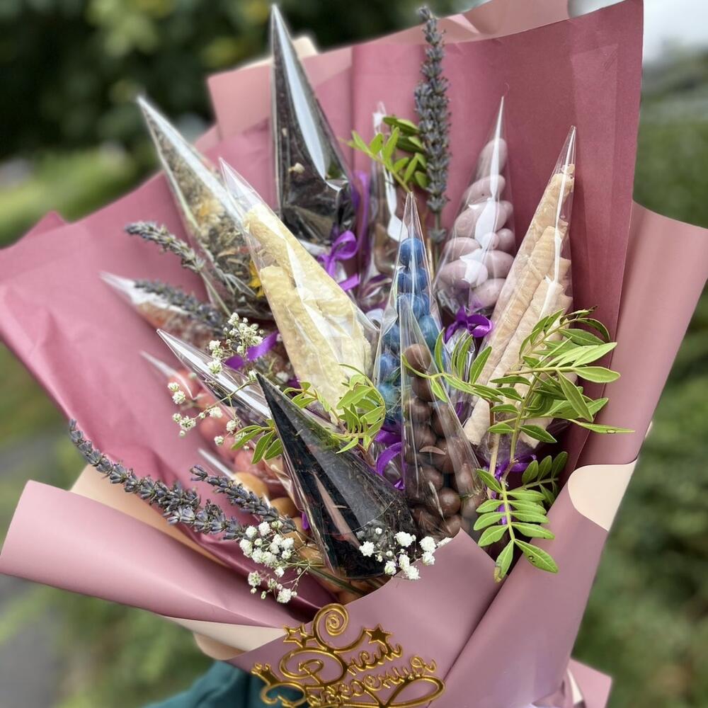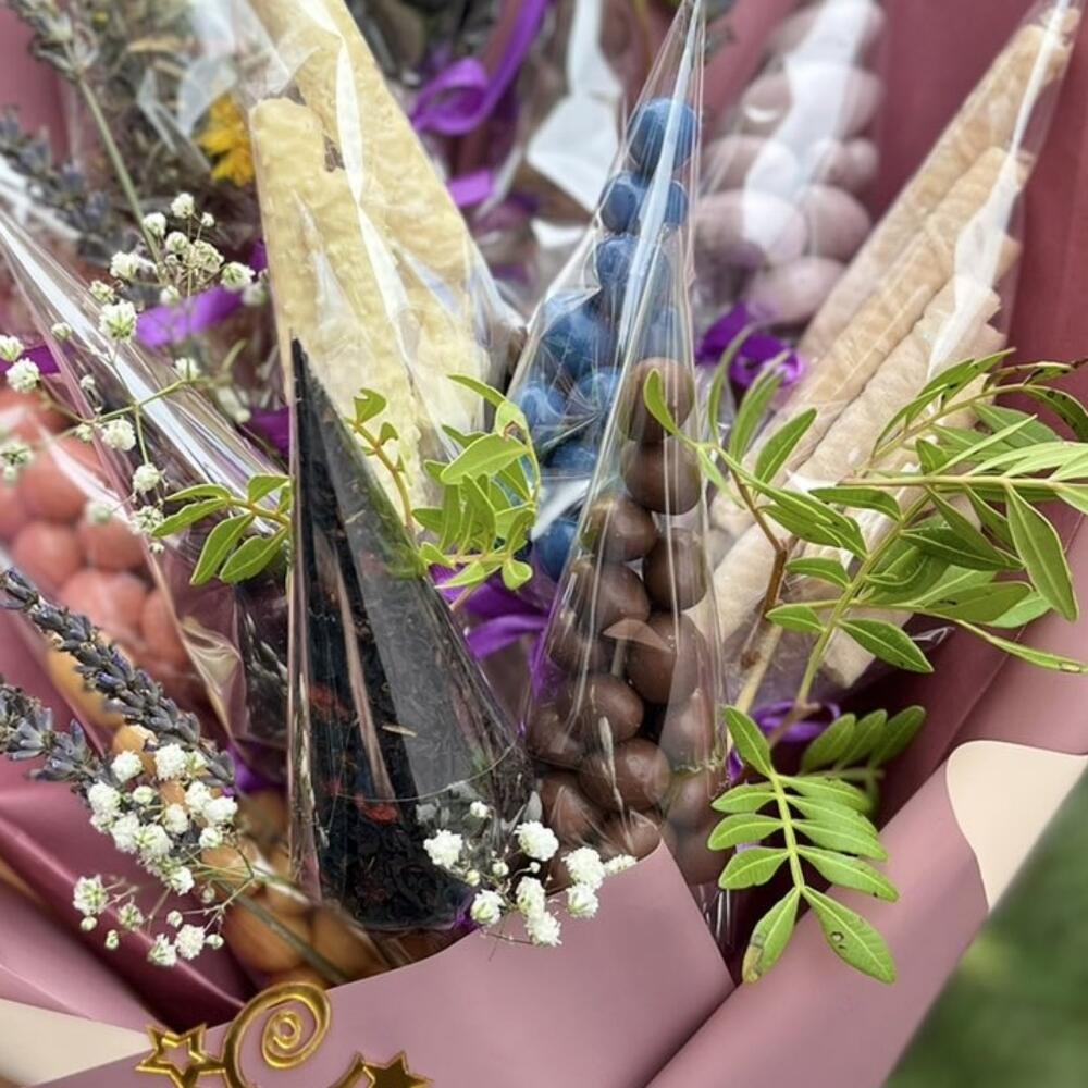Подарочная упаковка – 1 шт. Мармелад – 60 гр. Вишня в шоколаде – 70 гр. вафельные палочки – 60 гр. чай манго – 22 гр. чай зеленый шамаханская царицы – 22 гр. чай черный вечерний – 22 гр. фундук в йогурте и шоколаде – 50 гр. голубика в шоколаде – 50 гр. чай черный годжи – 22 гр. чай зеленый прекрасная незнакомка – 22 гр. миндаль в йогурте с манго – 50 гр. миндаль в йогурте с шоколадом – 50 гр.