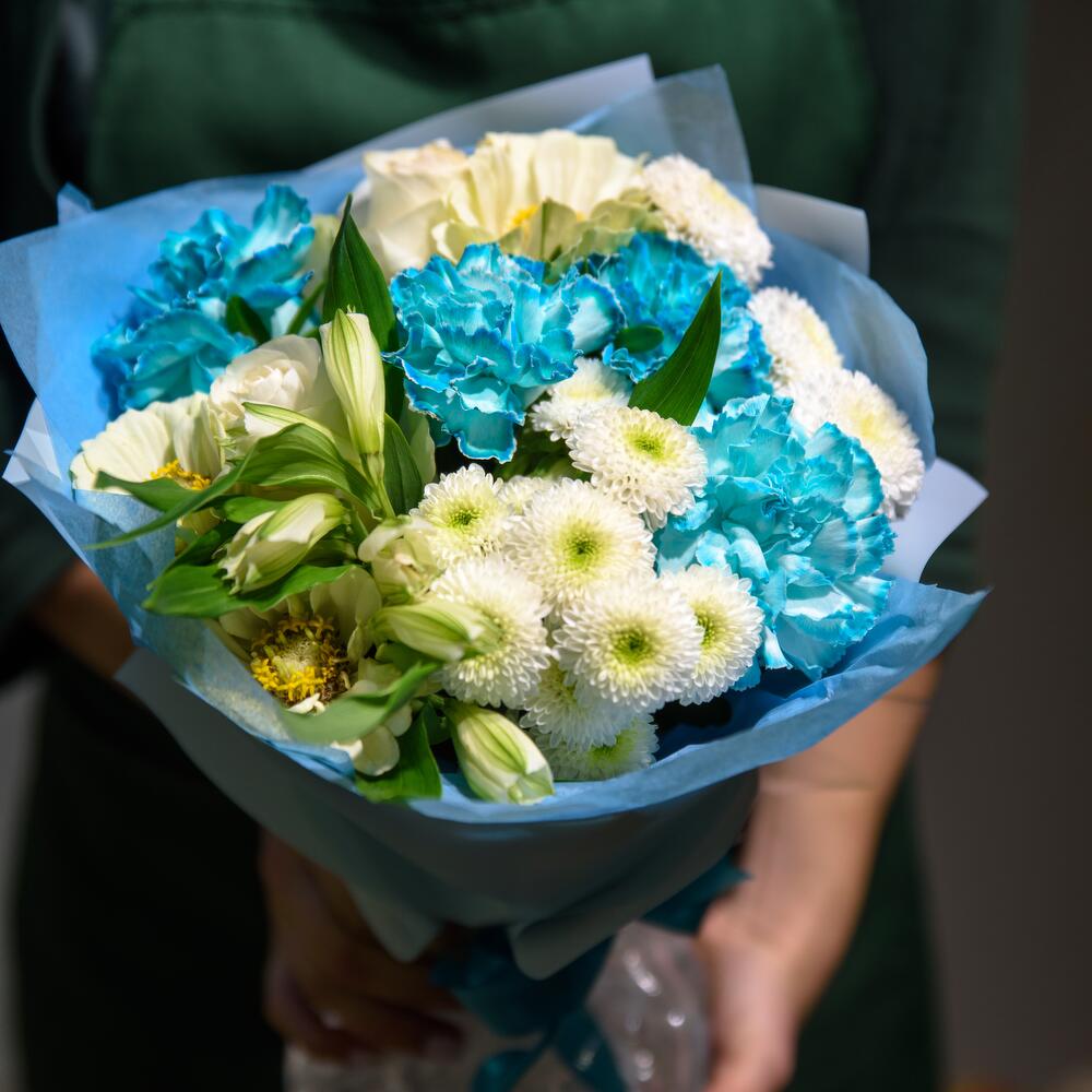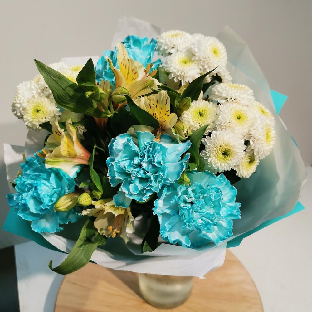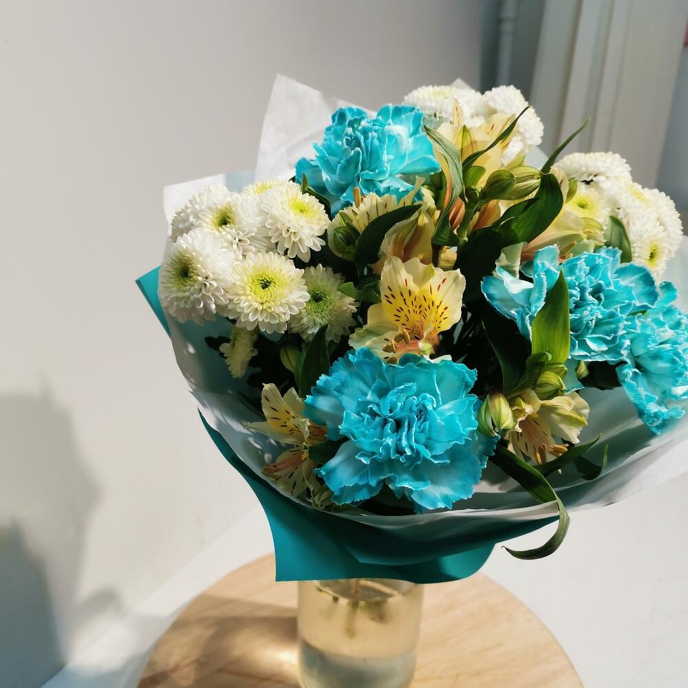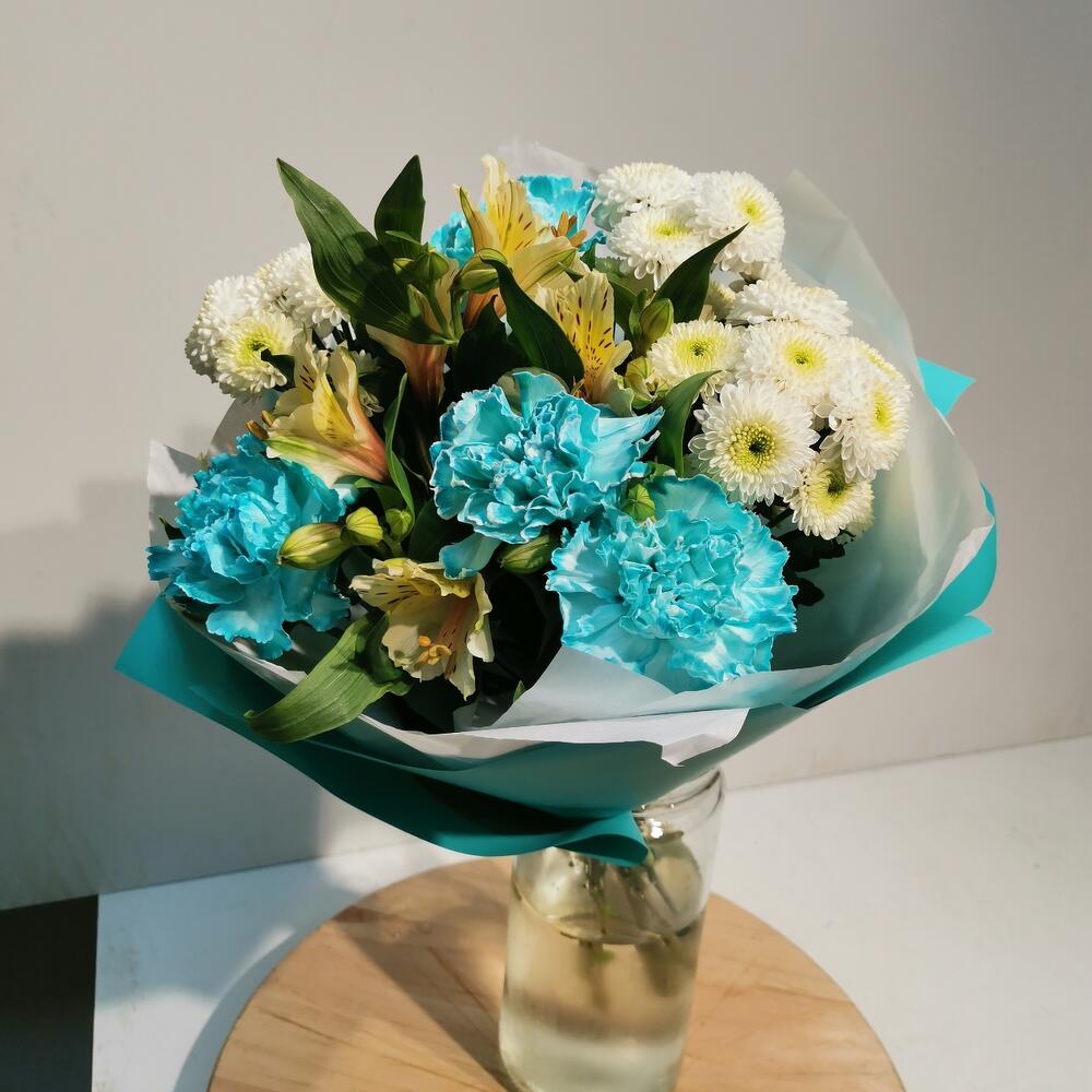 Альстромерия – 1 шт. Диантус – 4 шт. Сантини – 3 шт. Упаковка дизайнерская – 1 шт.