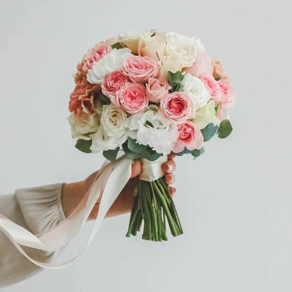 Букет невесты с розами и эустомой