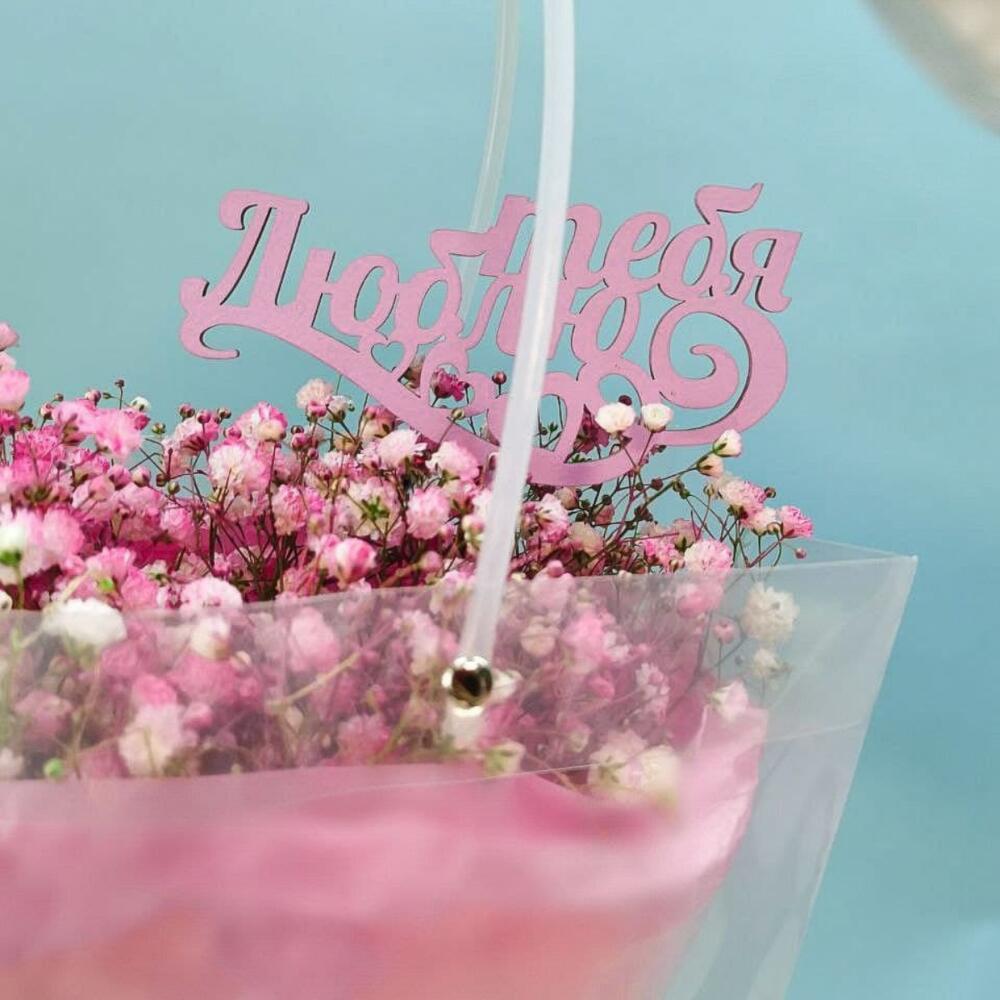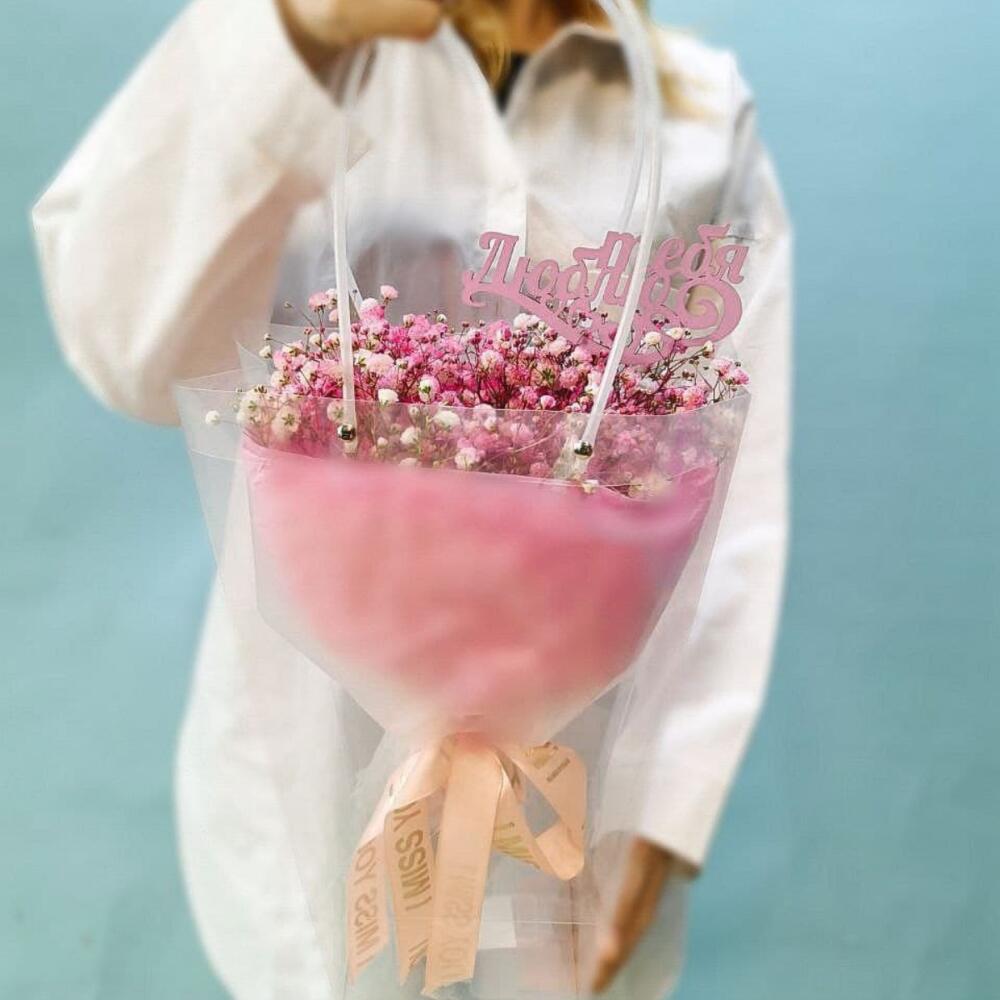 Букет розовой гипсофилы в сумочке