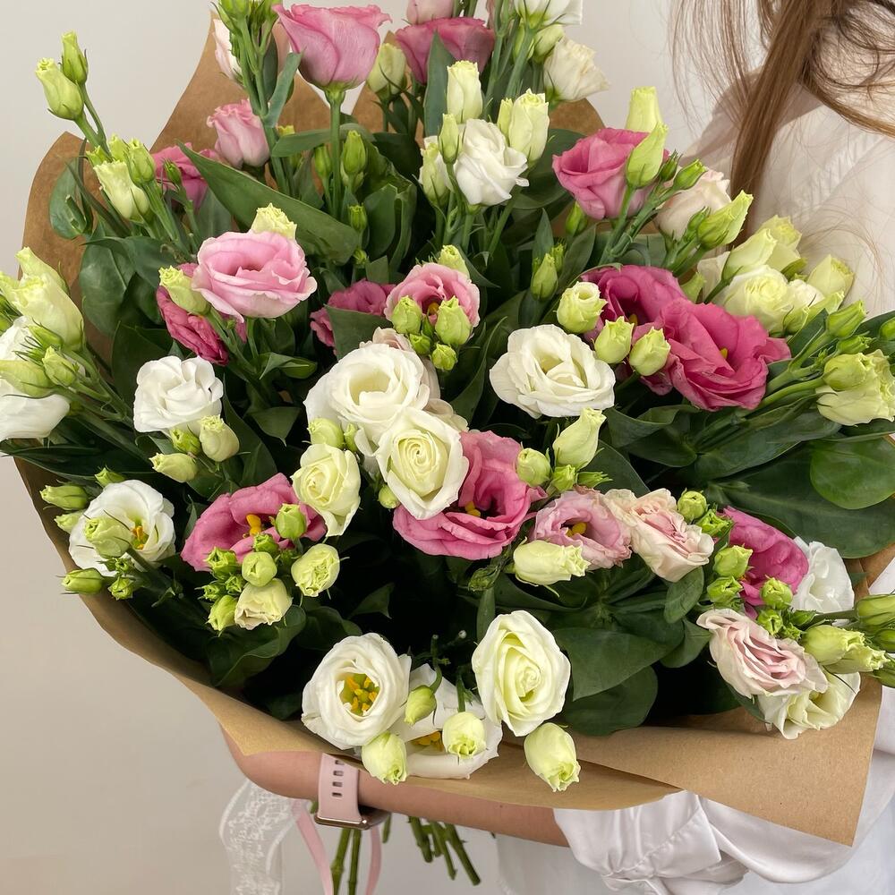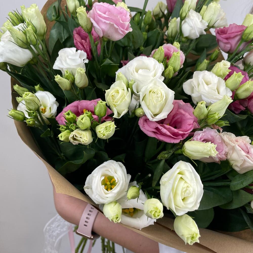 Лента - 2 шт. Эустома - 21 шт. Крафт упаковка - 2 шт.