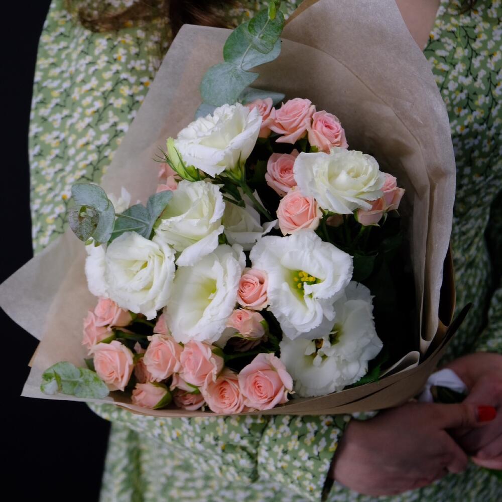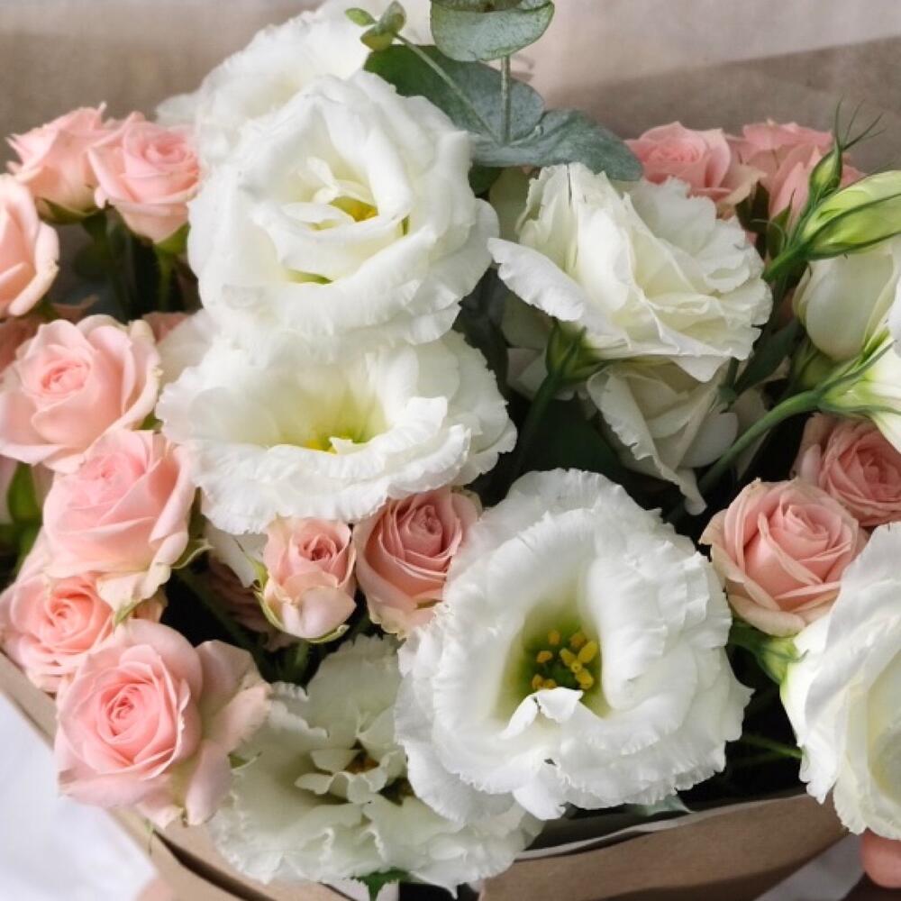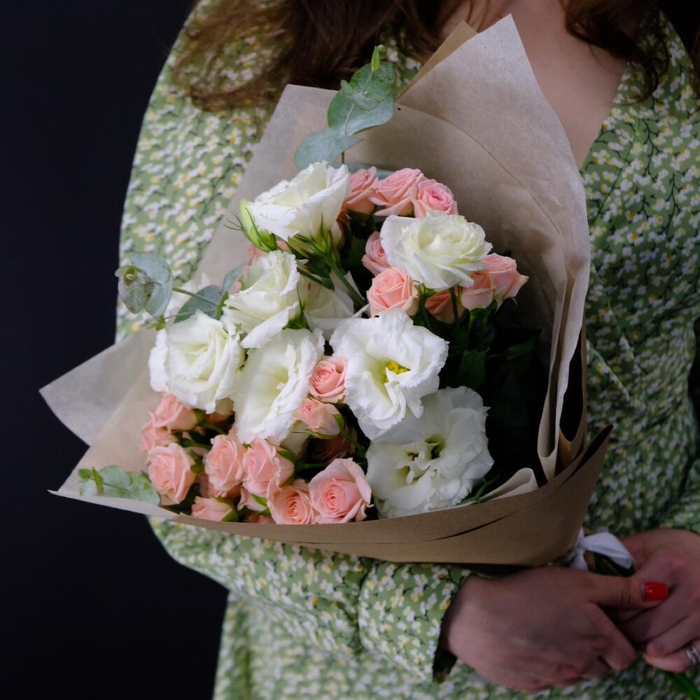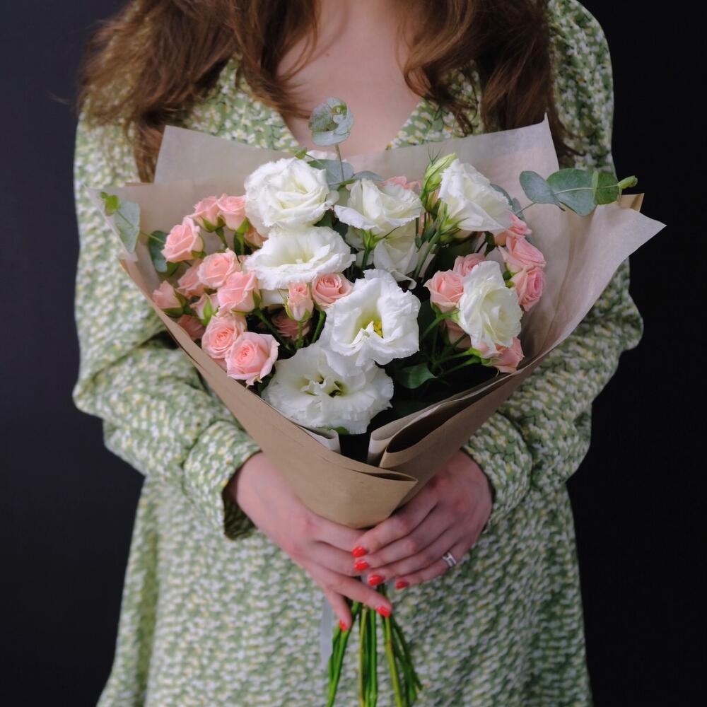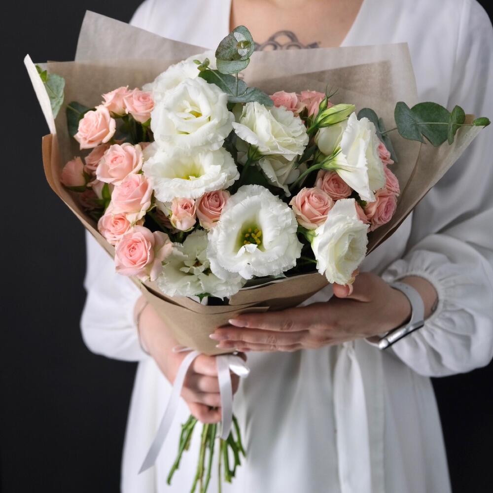Букет с эустомой и кустовыми розами