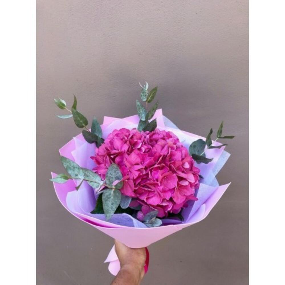 Гортензия - 1 шт. Лента - 1 шт. Эвкалипт - 4 шт. Упаковка - 1 шт. Тишью - 1 шт.