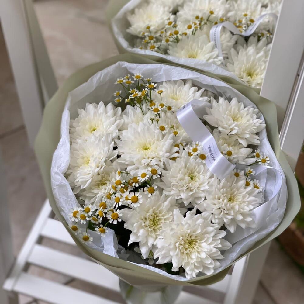Танацетум - 4 шт. Хризантема кустовая - 5 шт. Упаковка дизайнерская - 1 шт.