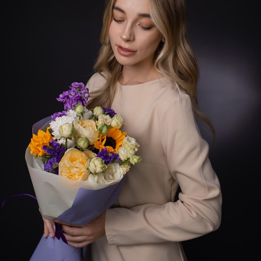 Букет с подсолнухами и статицей