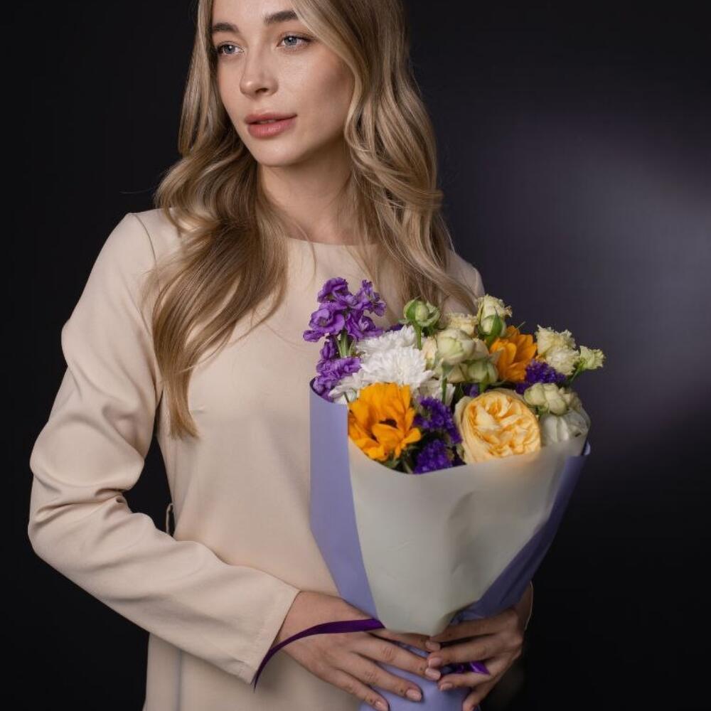 Милый букет в желто-сиреневых оттенках подарит много положительных эмоций 🌸