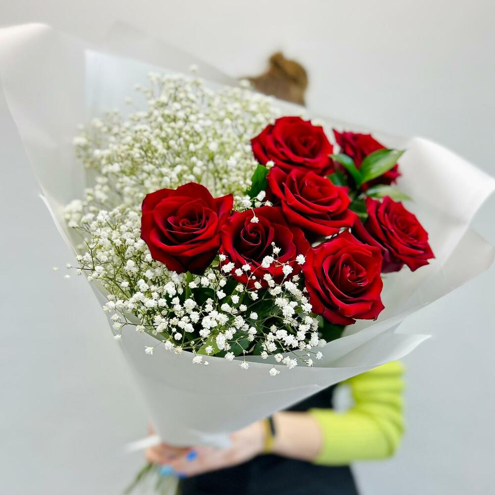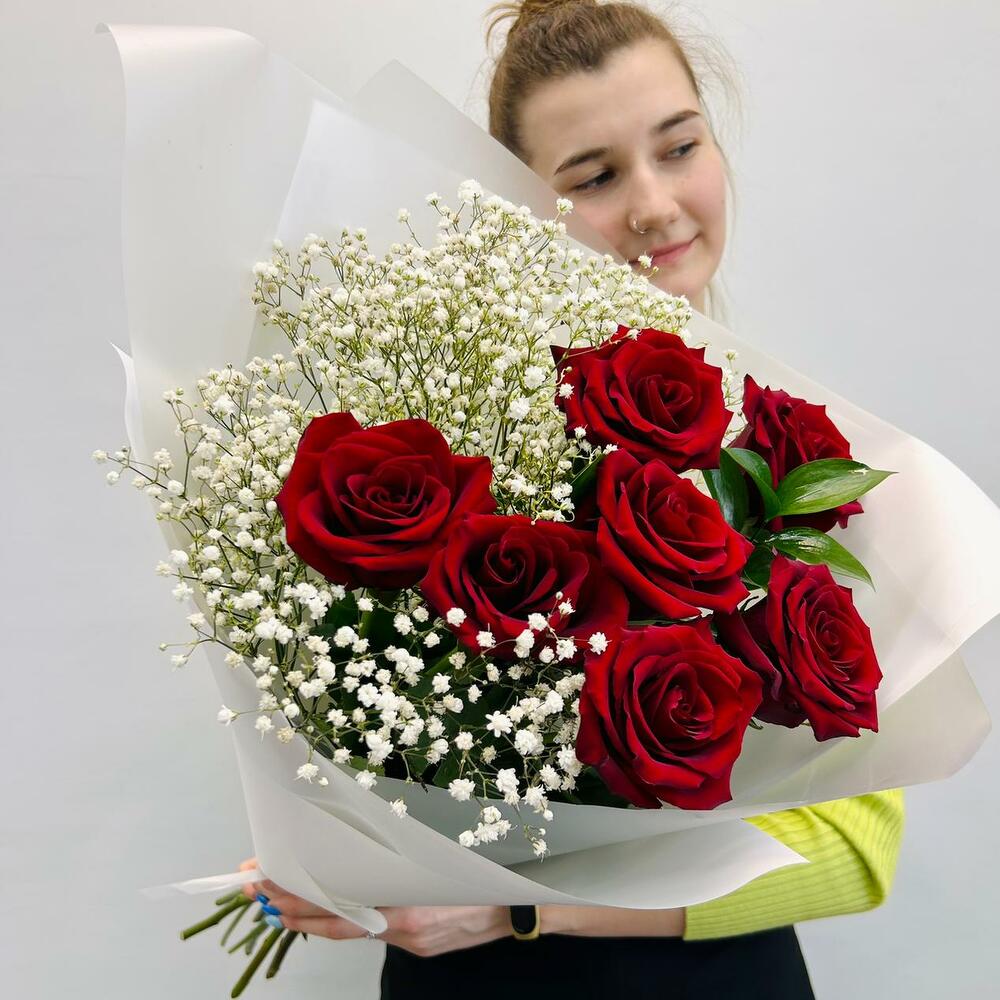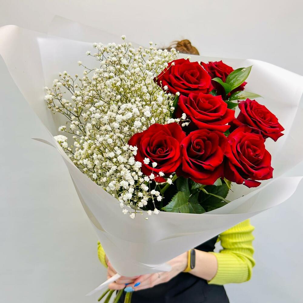 Сочетание роз и гипсофилы, оформление букета подчеркивает его воздушное начало, новая коллекция от Ловибукет.В зависимости от поставок цветов мы можем обговаривать различные оформления цветовой гаммы с менеджером.