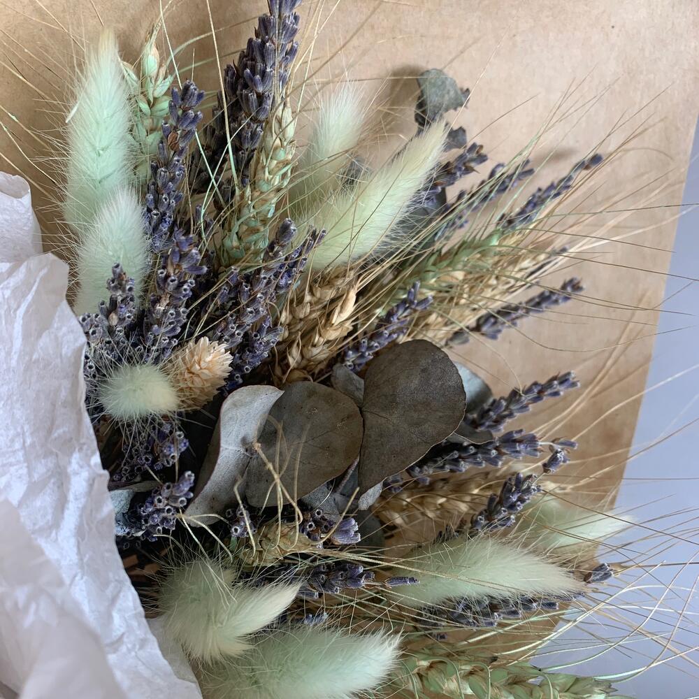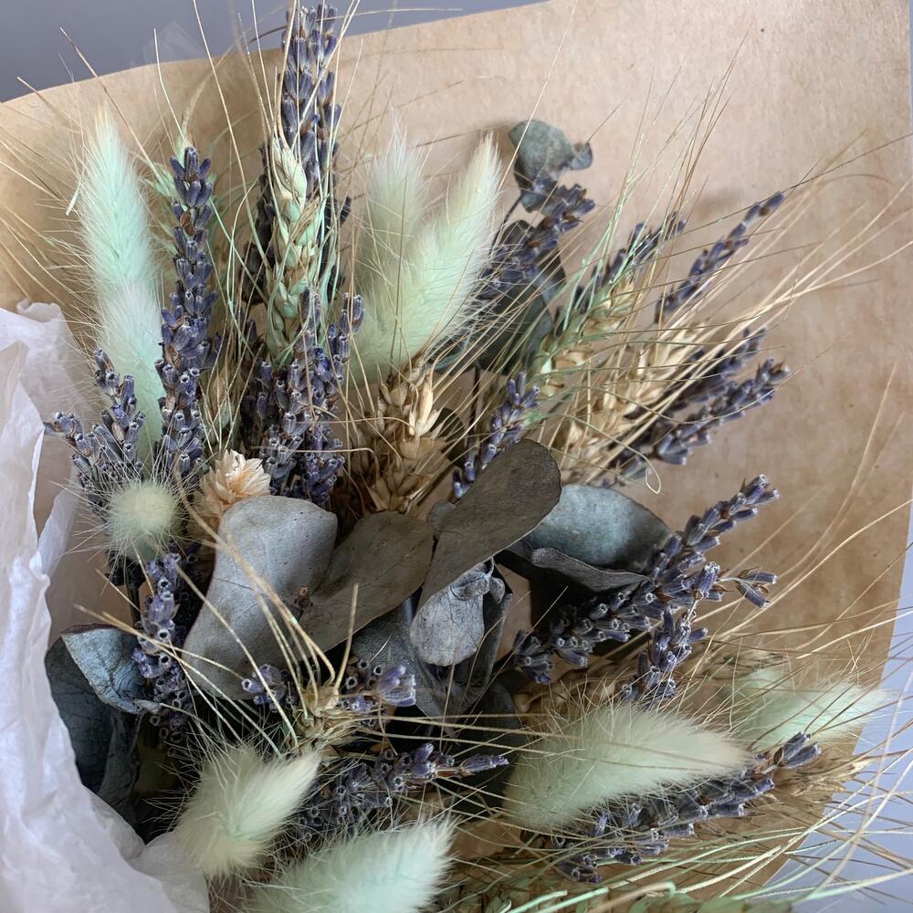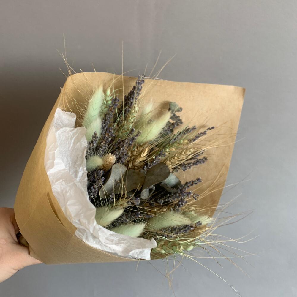 Лаванда - 20 шт. Эвкалипт - 1 шт. Упаковка - 1 шт. Пшеница - 12 шт. Лагурус - 9 шт.