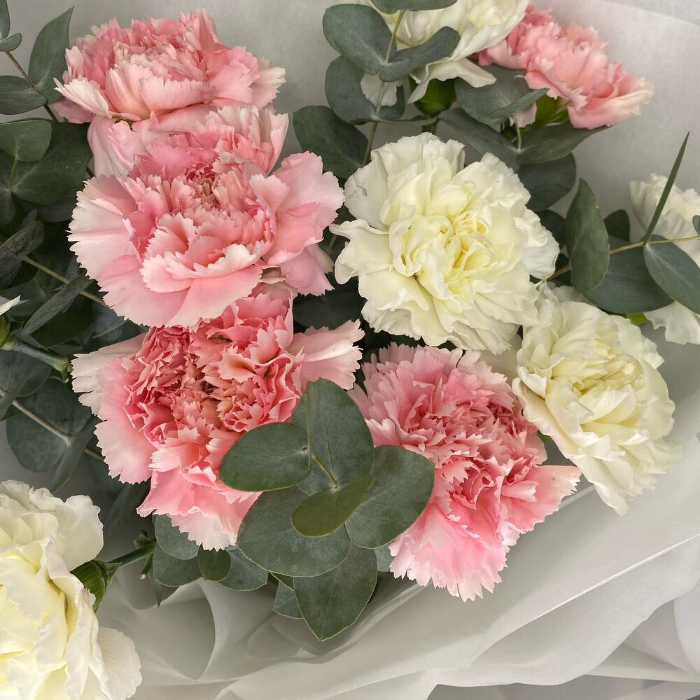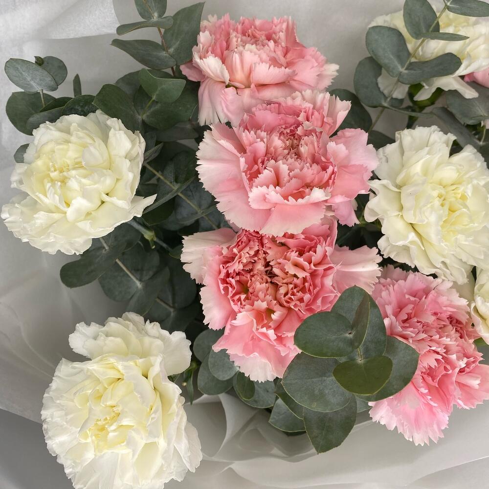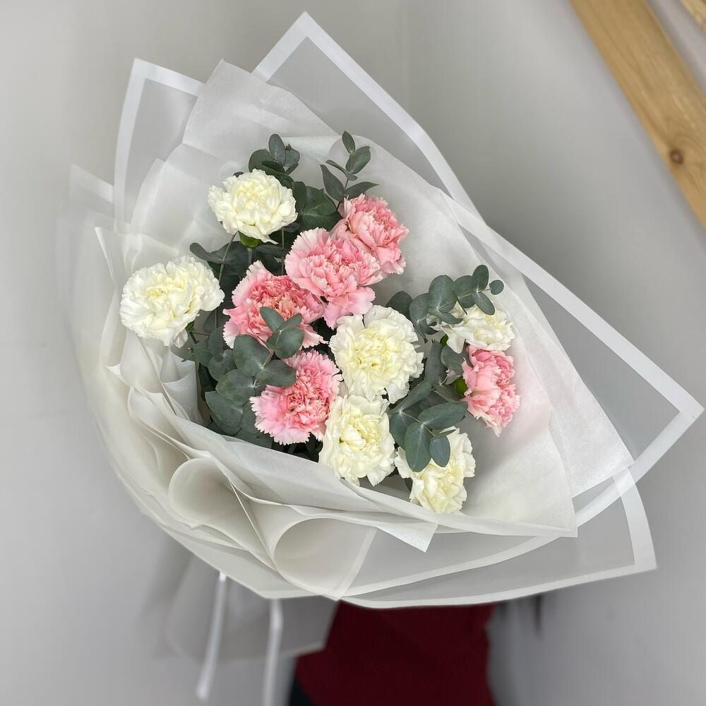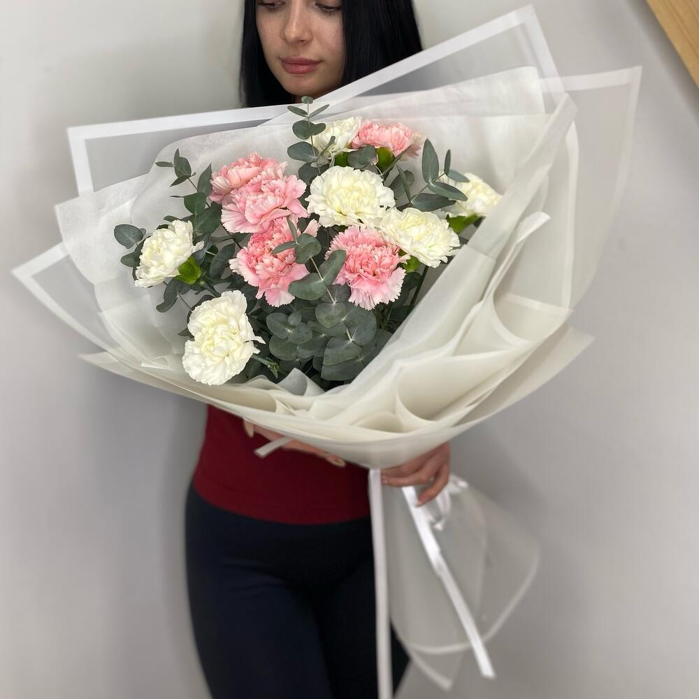 Стойкий букет из диантусов и ароматного эвкалипта 🌸ВАЖНО!!!Советы по уходу букета после получения:1. ПРИДЯ ДОМОЙ, ОБЯЗАТЕЛЬНО ПОСТАВЬТЕ БУКЕТ В ВОДУ.Если на улице холодно, оставьте цветы в тепле на 15-20 минут, дав им возможность принять температуру помещения.2. Ваза для букета не должна быть слишком маленькой, чтобы цветы не перевесили вазу, и слишком узкой, чтобы не травмировать стебли.3. Менять воду не реже, чем раз в сутки.4. Подрезать стебли, перед тем, как опустить цветы в воду.К каждому букету в подарок кладем порошочек Chrisal,который позволит букету находится в свежем состояние более долгое время💐Для того, чтобы букеты простояли дольше, следует придерживаться пропорция при разведения средства в воде (как правило, один пакетик разводят в 0,5 л чистой воды).Если букет крупный — такого количества воды явно не достаточно!
