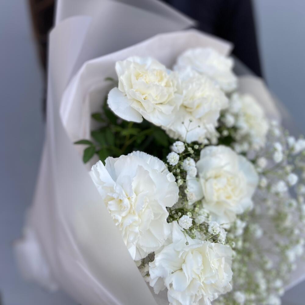 Гипсофила - 2 шт. Лента атласная - 1 шт. Диантус - 7 шт. Фисташка - 3 шт. Упаковка дизайнерская - 1 шт.