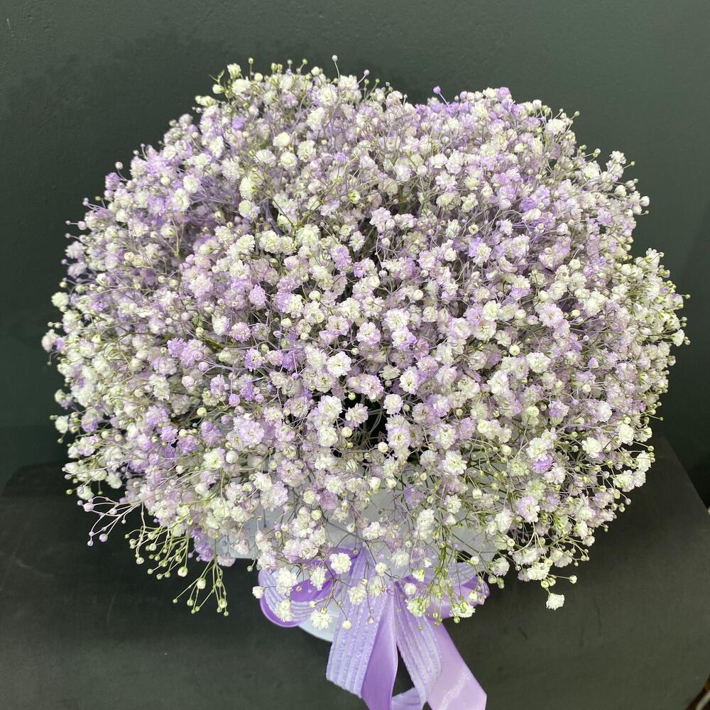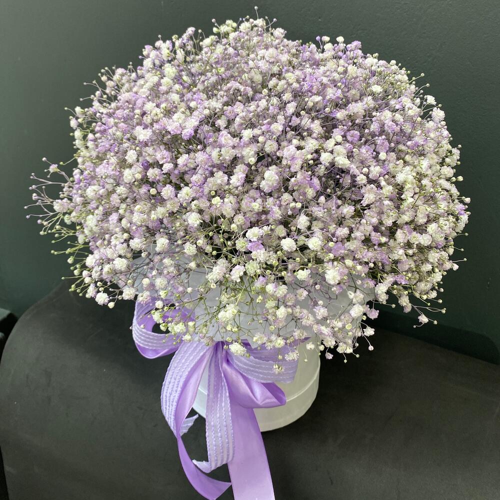 Гипсофила - 10 шт. Коробка шляпная - 1 шт. Оазис флористический - 1 шт. Тишью белое - 2 шт.