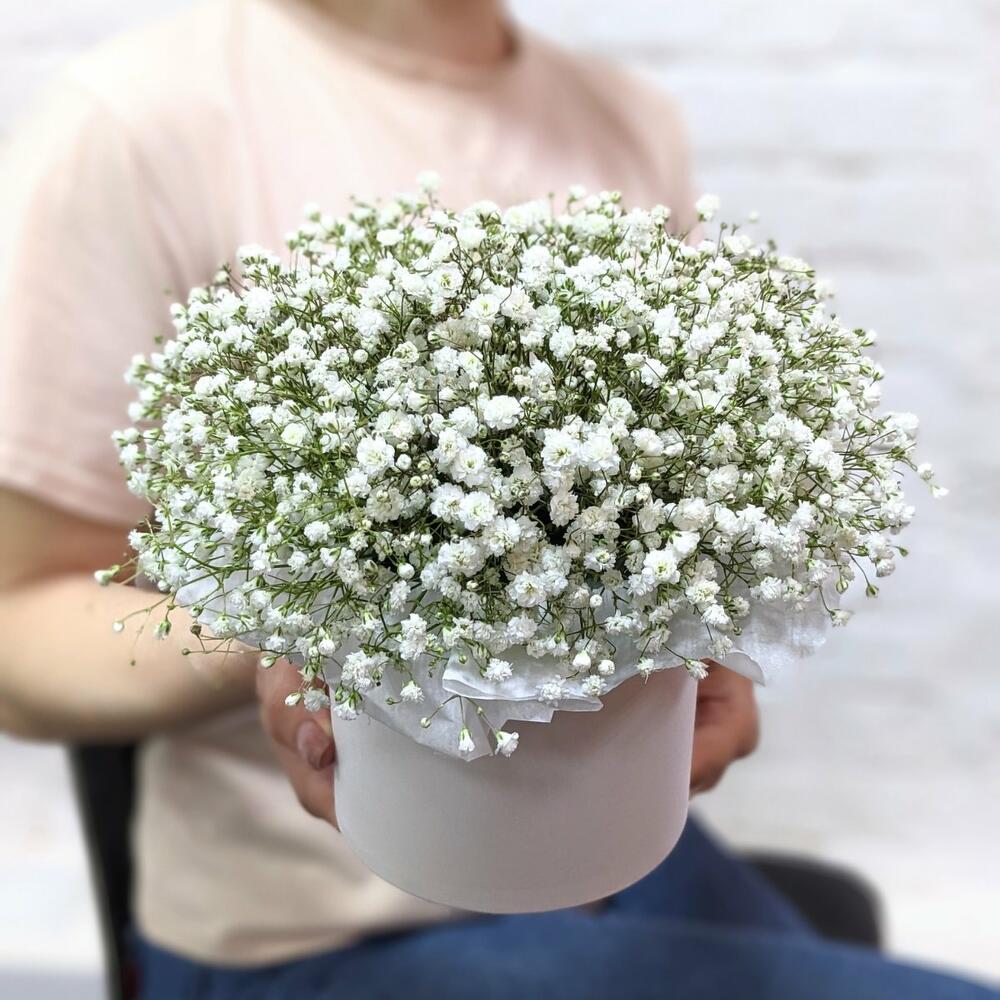 Коробка шляпная – 1 шт. гипсофила белая – 3 шт.