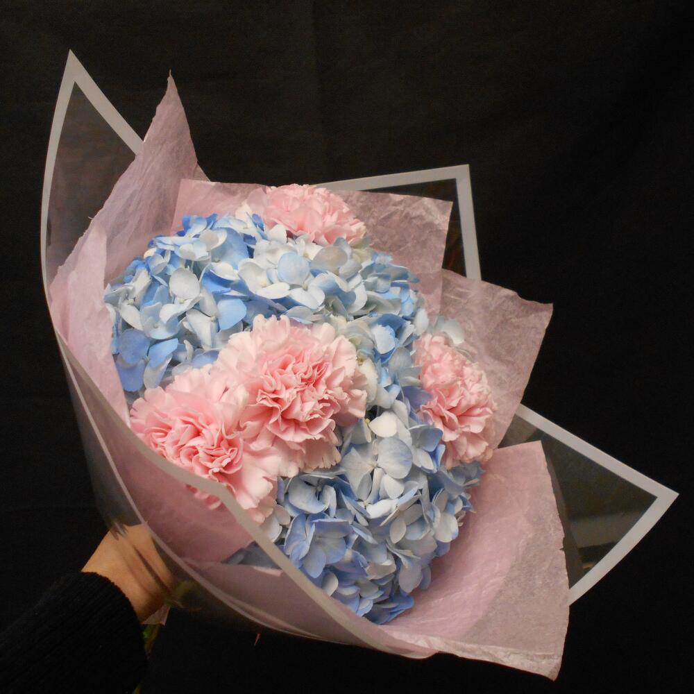 Прекрасный выборСвежие нежно розовые гвоздики с голубыми гортензиями .Идеальный букет, чтобы чей-то день стал особенным.Дарите радость и счастье своим любимым и близким людямВ подарок к каждому заказу :- Средство для продления жизни цветов- Подпишем карточку с Вашими пожеланиями