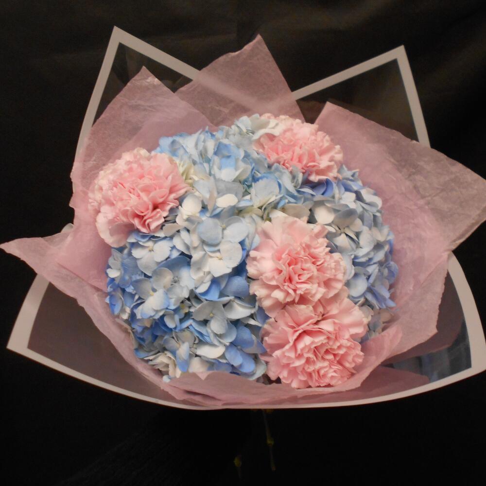 Голубые гортензии с розовыми гвоздиками