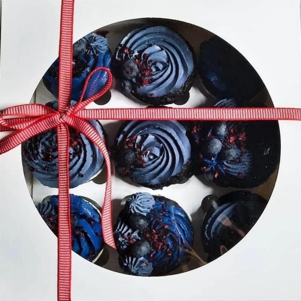 Тесто: яйца, Сахар, мука, какао, разрыхлитель, масло растительное, молоко, вода. Крем: творожный сыр, сливки, сахарная пудра, краситель