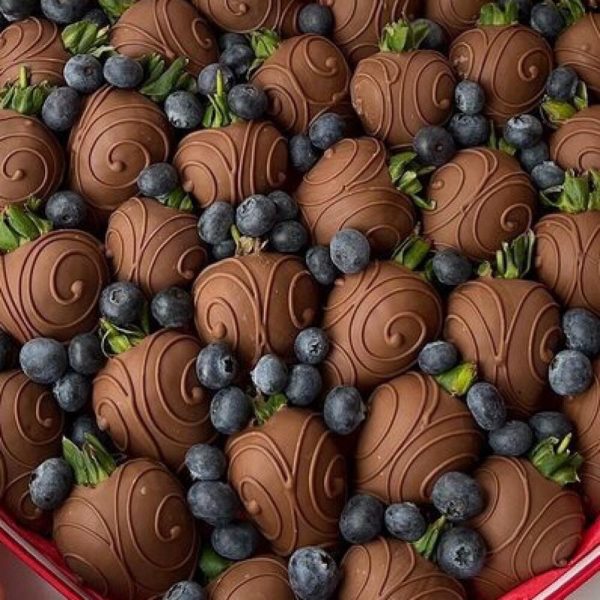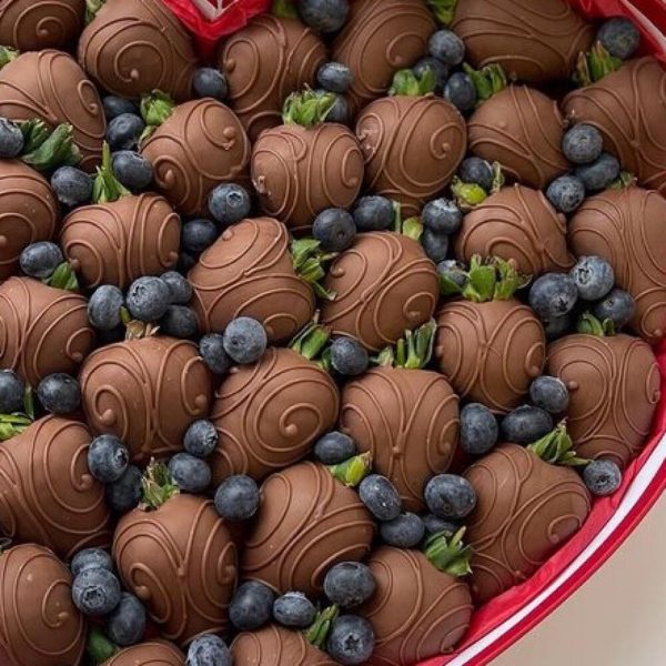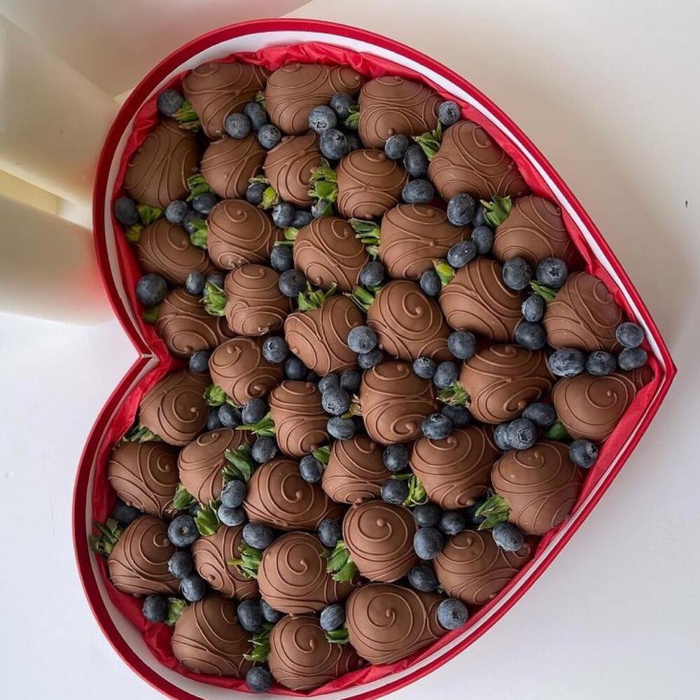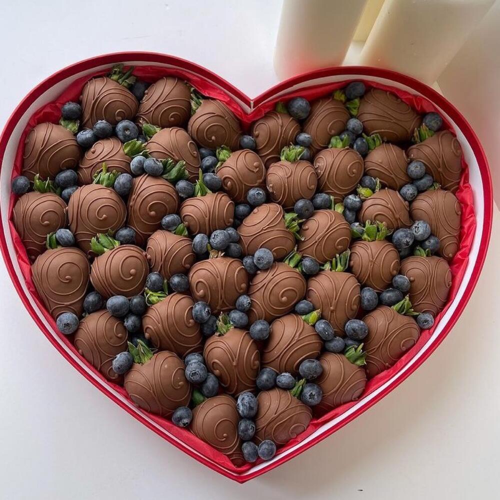 Клубника в шоколаде – 37 шт Голубика 200 гр. коробка сердце