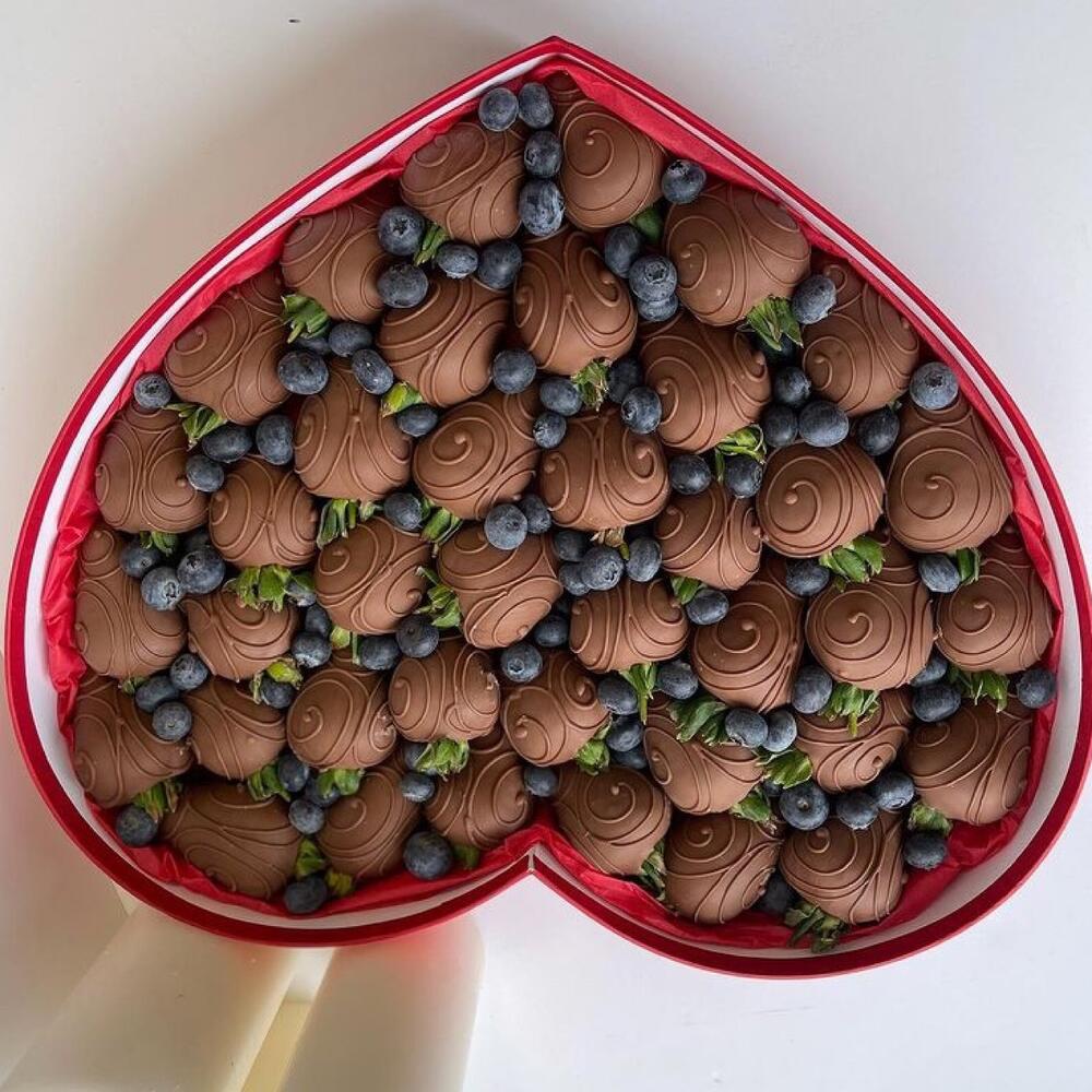 Клубника в шоколаде - 37 шт Голубика 200 гр. коробка сердце