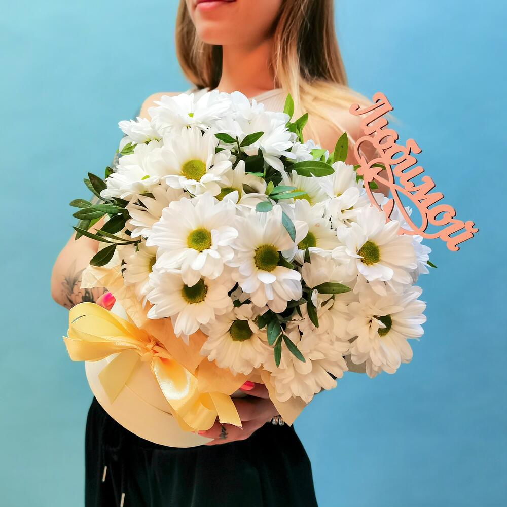 Лента – 1 шт. Оазис – 1 шт. Фисташка – 1 шт. Коробка – 1 шт. Топпер – 1 шт. Бумага тишью – 1 шт. хризантема спрей – 5 шт.