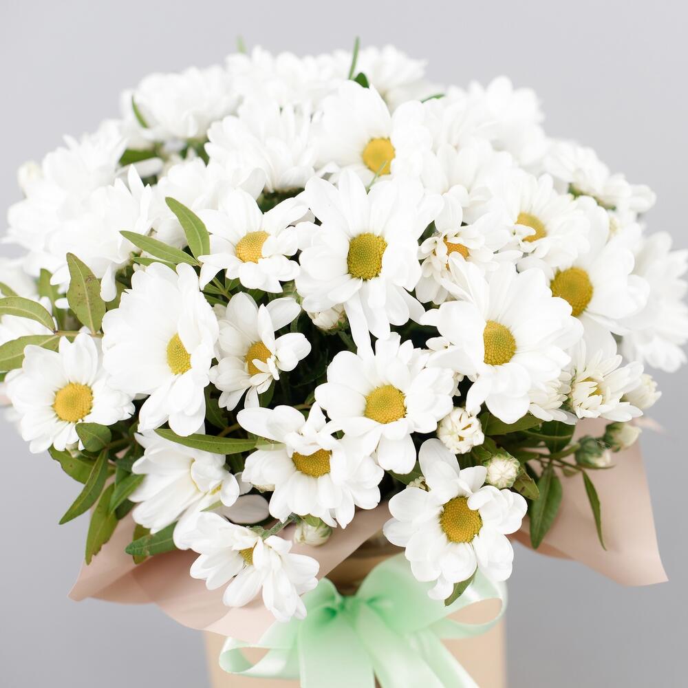 Композиция “Садовый аромат” Подойдёт для любого повода. Белые хризантемы символизируют верность, преданность и чистоту.