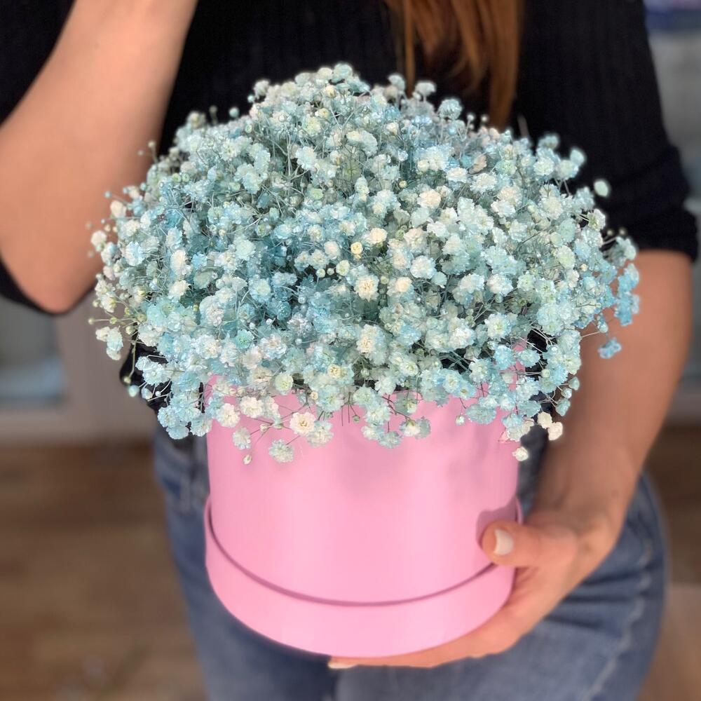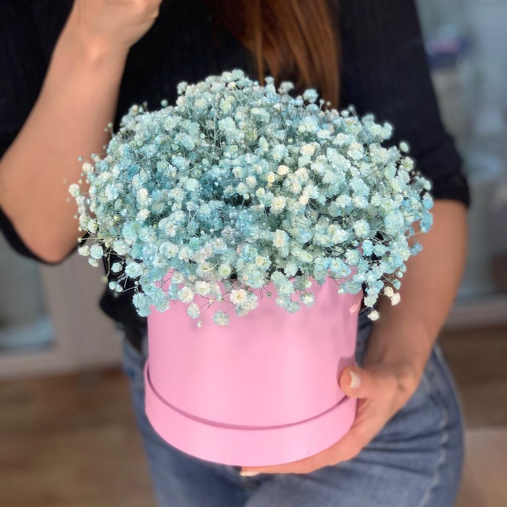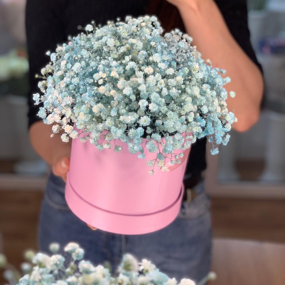 Гипсофила – 7 шт. Дизайнерская коробка – 1 шт. Оазис флористический – 1 шт. улыбка для вас 🙂 – 1 шт.