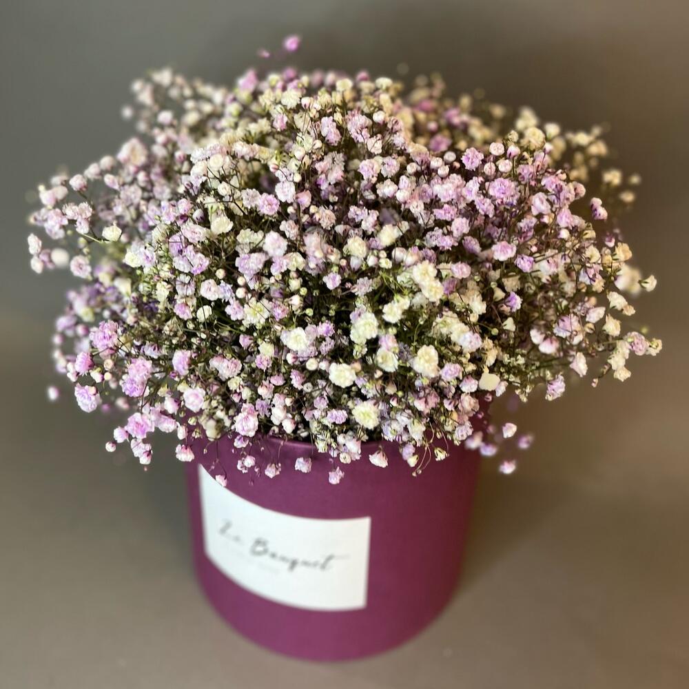 Гипсофила - 9 шт. Шляпная коробка - 1 шт. Оазис флористический - 1 шт.