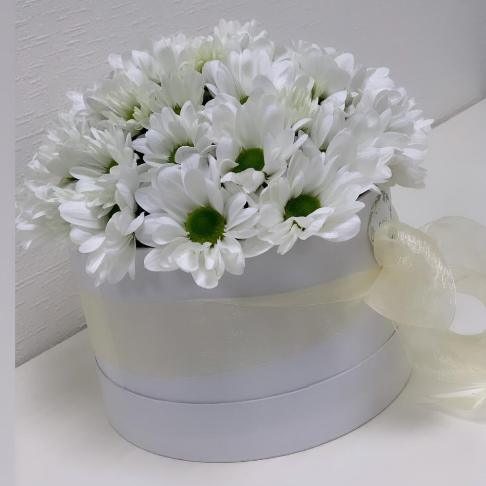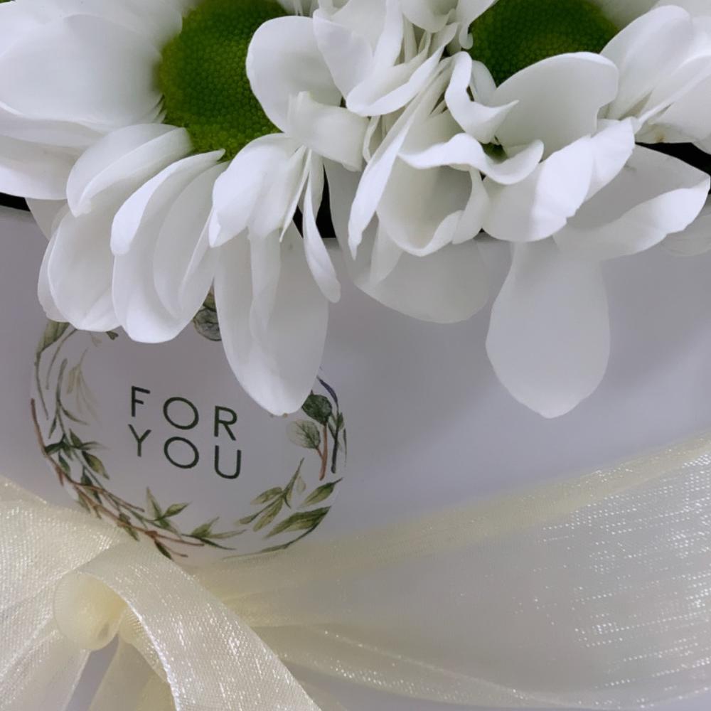 Ромашка – 7 шт. Коробка шляпная – 1 шт. Оазис флористический – 1 шт.